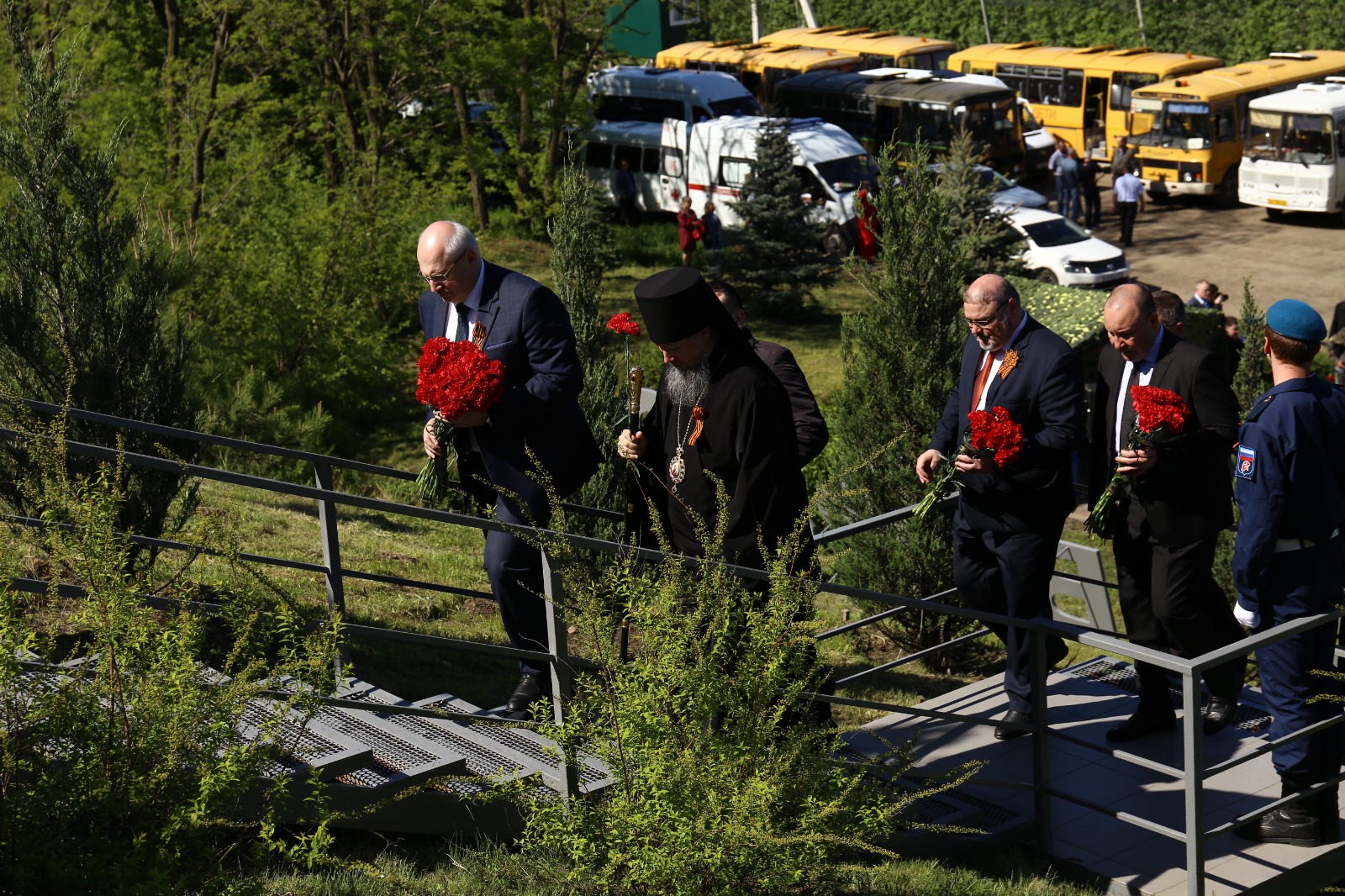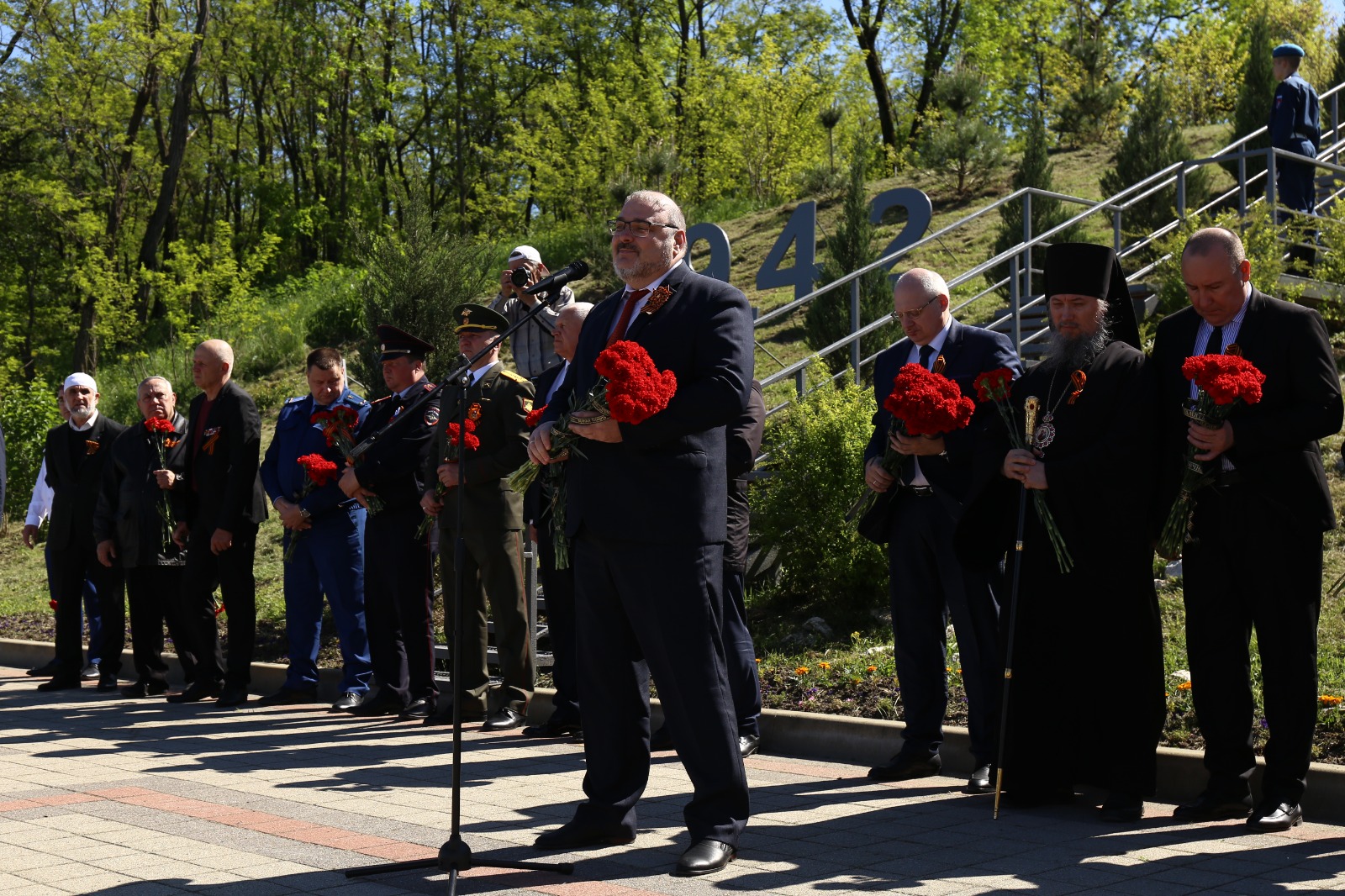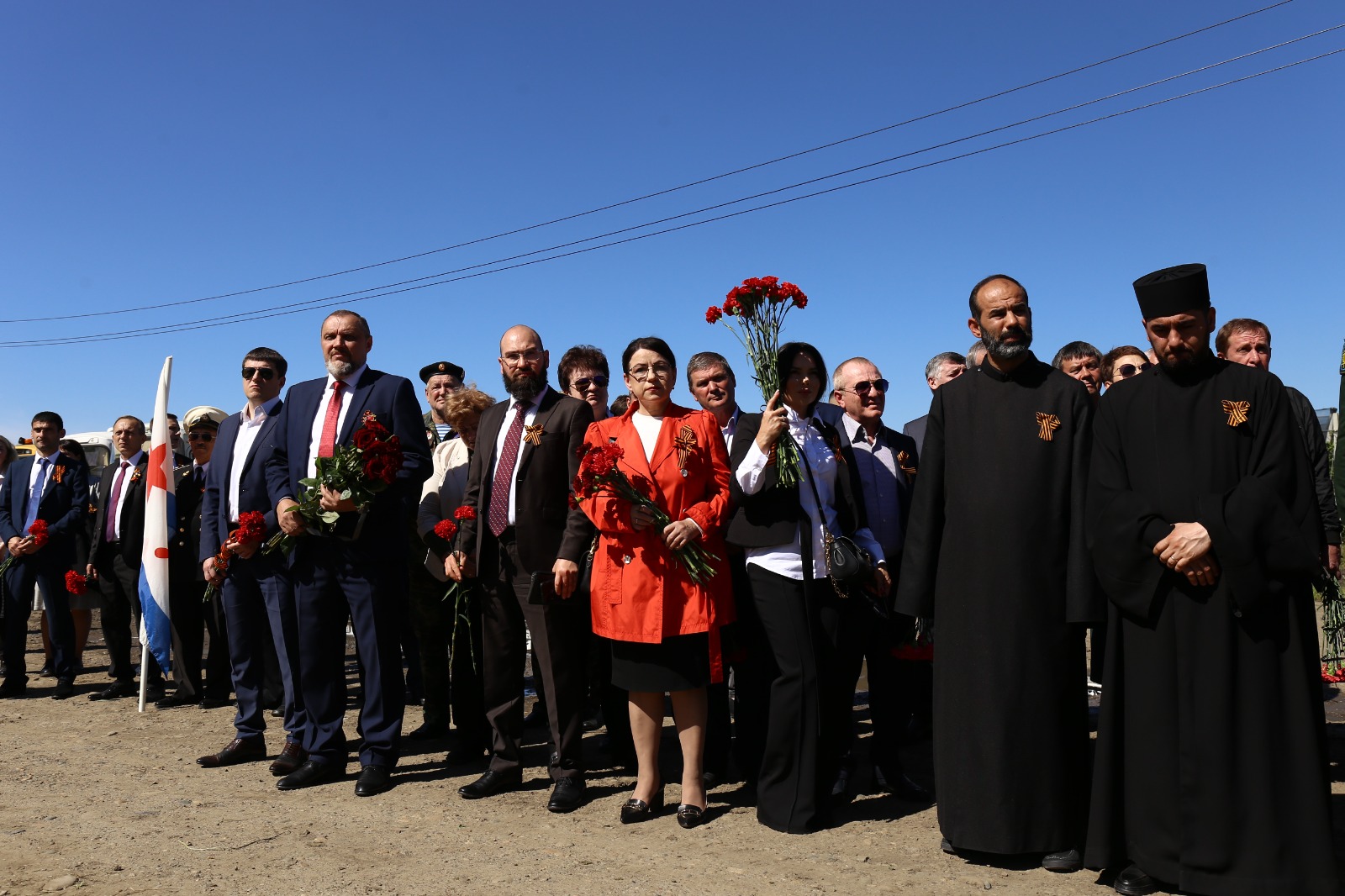 Собравшиеся почтили память минутой молчания и возложили к мемориалу цветы.