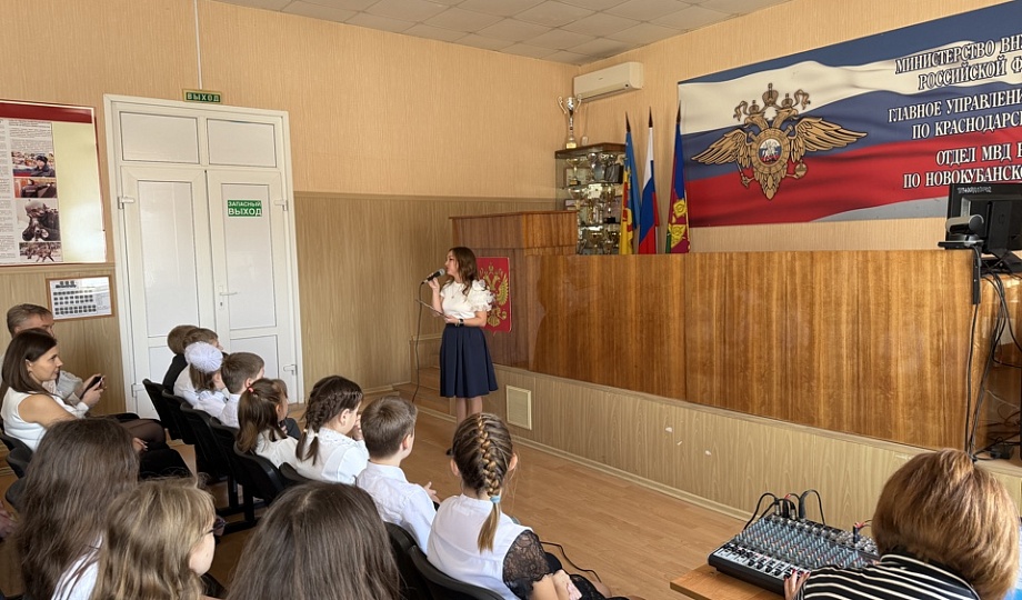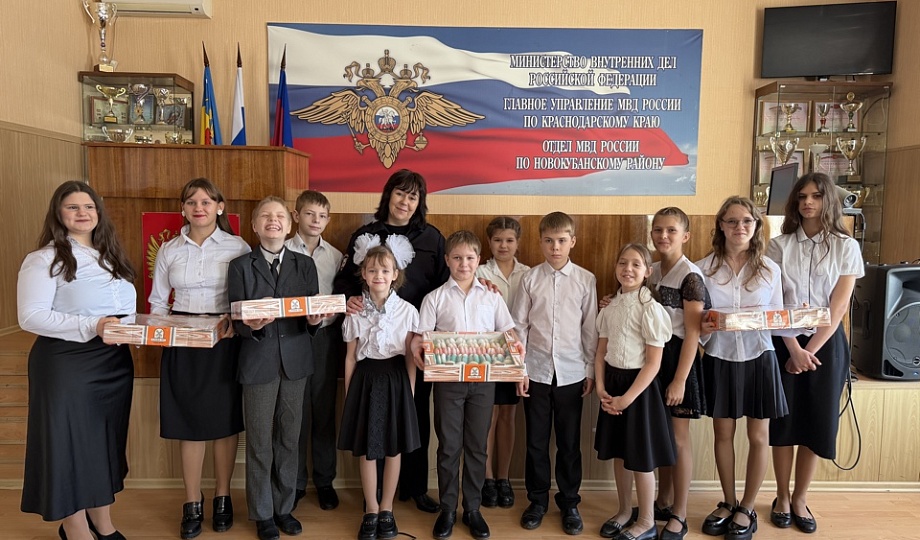 В День Защитника Отечества подшефные воспитанники специальной (коррекционной) общеобразовательной школы-интерната села Ковалевского посетили Отдел МВД России по Новокубанскому району с поздравлениями.