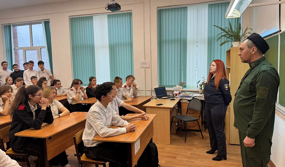Полицейские Новокубанского района совместно с представителем казачества провели для подростков профилактическую беседу