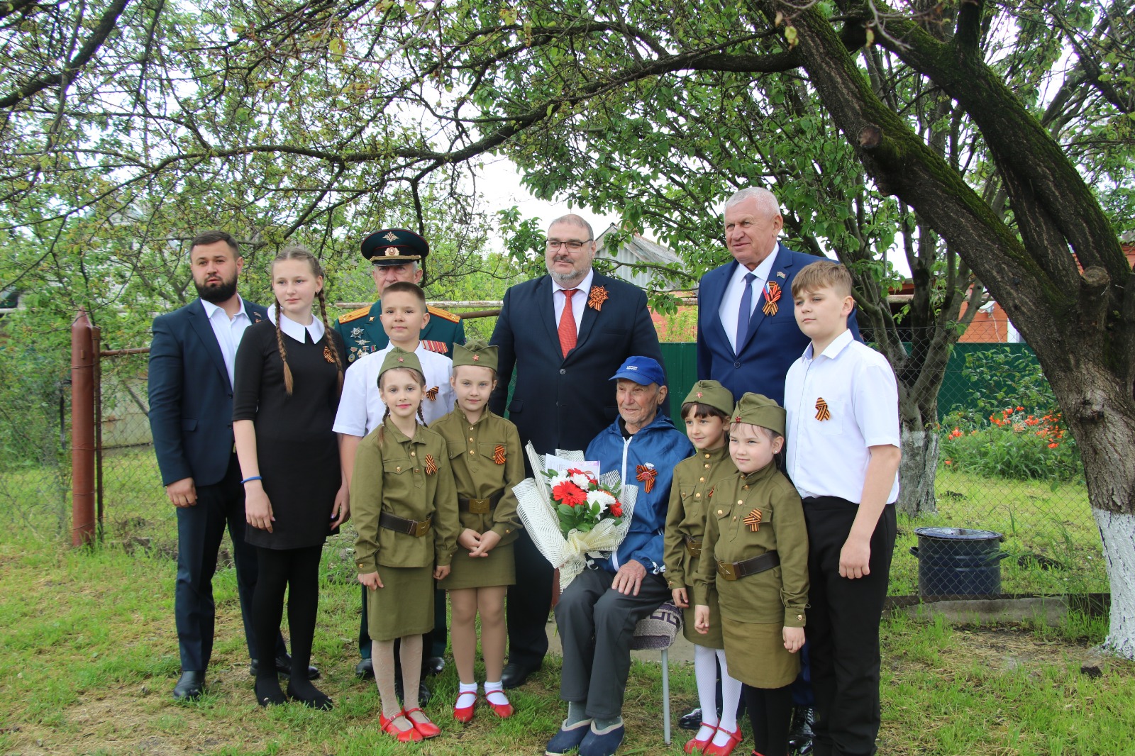 🔹Первым делегация посетила ветерана Великой Отечетвенной войны Василия Ивановича Хархана, он был призван на фронт в 1943 году. Участвовал в боевых действиях по освобождению Кубани от фашистских захватчиков на «голубой линии» за станицей Крымской. Под станицей Гостаевской 25 сентября 1943 года был тяжело ранен осколками снаряда. Награжден Орденом «Отечественной Войны I степени» и многими юбилейными медалями.