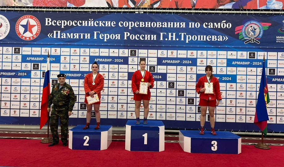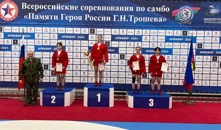 21-22 ноября в Армавире прошли Всероссийские соревнования по самбо среди юношей и девушек 2007-2009 годов рождения "Памяти Героя России Г.Н. Трошева". В соревнованиях приняли участие более 300 спортсменов из различных регионов Российской федерации. В числе участников были учащиеся МАУ ДО СШ "Олимп" им. М.В.Канищева г.Новокубанска. Двое наших девушек завоевали серебряную и бронзовую награды. В весовой категории до 72 кг Кива Ева (тренер-преподаватель Коневцова Татьяна Владимировна)проиграла только одну встречу в финале и заняла 2 место. Акопян Мариетта (тренер-преподаватель Джагарян Норик Саркисович) в весовой категории до 50 кг заняла 3 место.