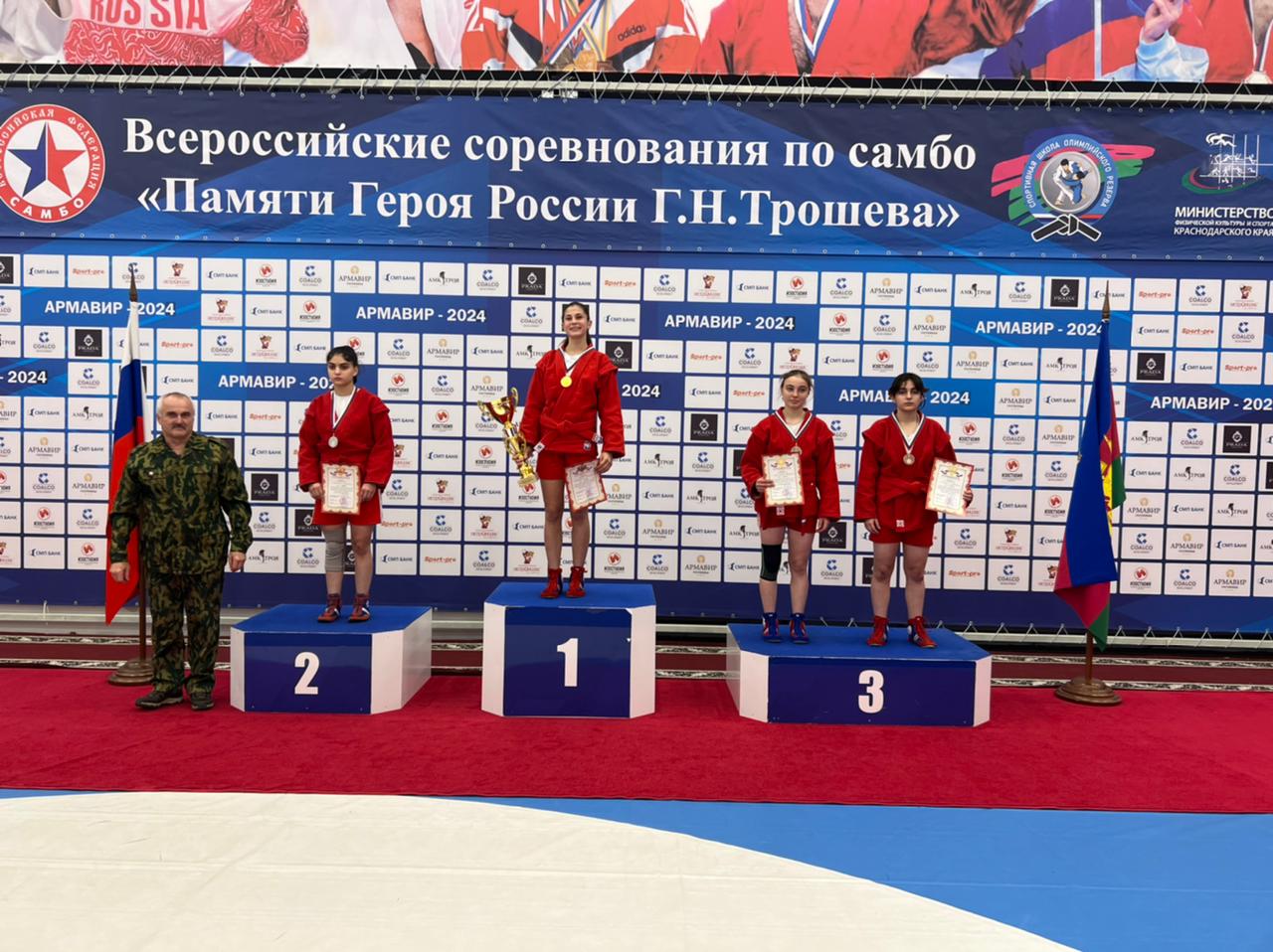 21-22 ноября в Армавире прошли Всероссийские соревнования по самбо среди юношей и девушек 2007-2009 годов рождения "Памяти Героя России Г.Н. Трошева". В соревнованиях приняли участие более 300 спортсменов из различных регионов Российской федерации. В числе участников были учащиеся МАУ ДО СШ "Олимп" им. М.В.Канищева г.Новокубанска. Двое наших девушек завоевали серебряную и бронзовую награды. В весовой категории до 72 кг Кива Ева (тренер-преподаватель Коневцова Татьяна Владимировна)проиграла только одну встречу в финале и заняла 2 место. Акопян Мариетта (тренер-преподаватель Джагарян Норик Саркисович) в весовой категории до 50 кг заняла 3 место.Поздравляем с завоеванием наград Всероссийских соревнований Еву, Мариетту, тренеров - преподавателей Татьяну Владимировну и Норика Саркисовича!!!