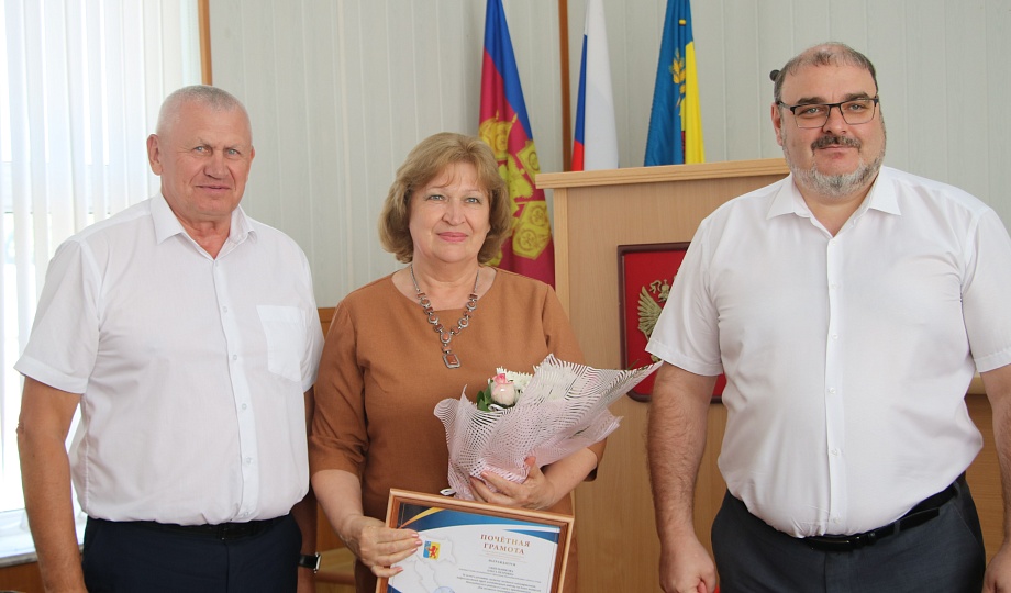 В завершении мероприятия глава района Александр Гомодин совместно с председателем Совета Евгением Шутовым вручили почетную грамоту за вклад в развитие системы местного самоуправления Ольге Синельниковой, а также поздравили с днем рождения Евгения Сусского и Ларису Петрову.