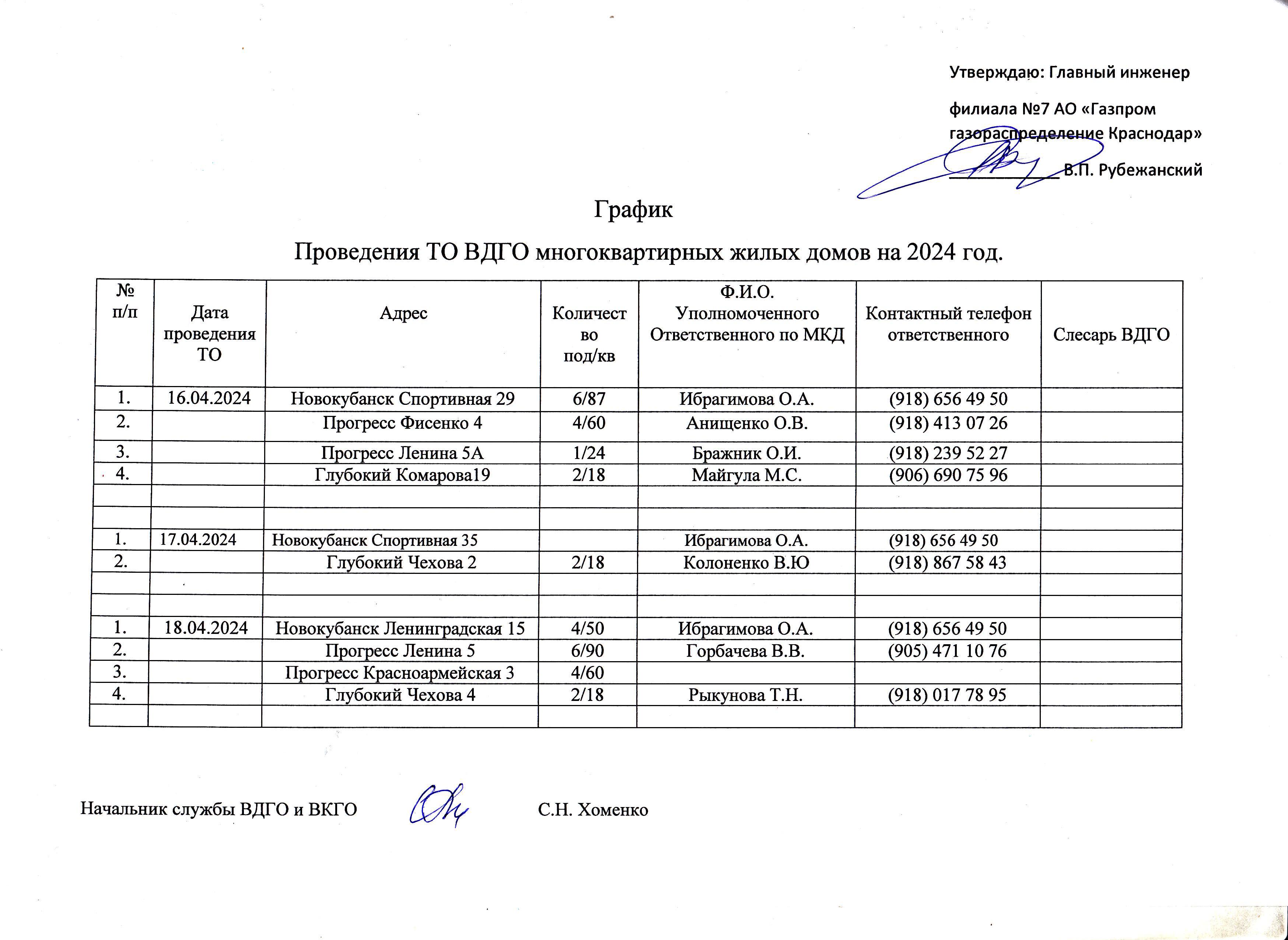 Проведение ТО ВДГО на 16-18 апреля 2024г.