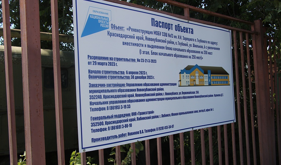 Глава района Александр Гомодин совместно с депутатом Государственной думы Андреем Дорошенко в процессе рабочей встречи ознакомились с этапами строительства пристройки школы №13 им. И.И. Зарецкого в п. Глубоком, что стало возможным благодаря участию в национальном проекте «Образование». В результате реконструкции планируется увеличить здание на 250 мест. На сегодняшний день выполнены работы по демонтажу хозяйственных построек, устройству ограждений, вырубке деревьев и кустарников, проведены земляные работы по разрытию котлована.