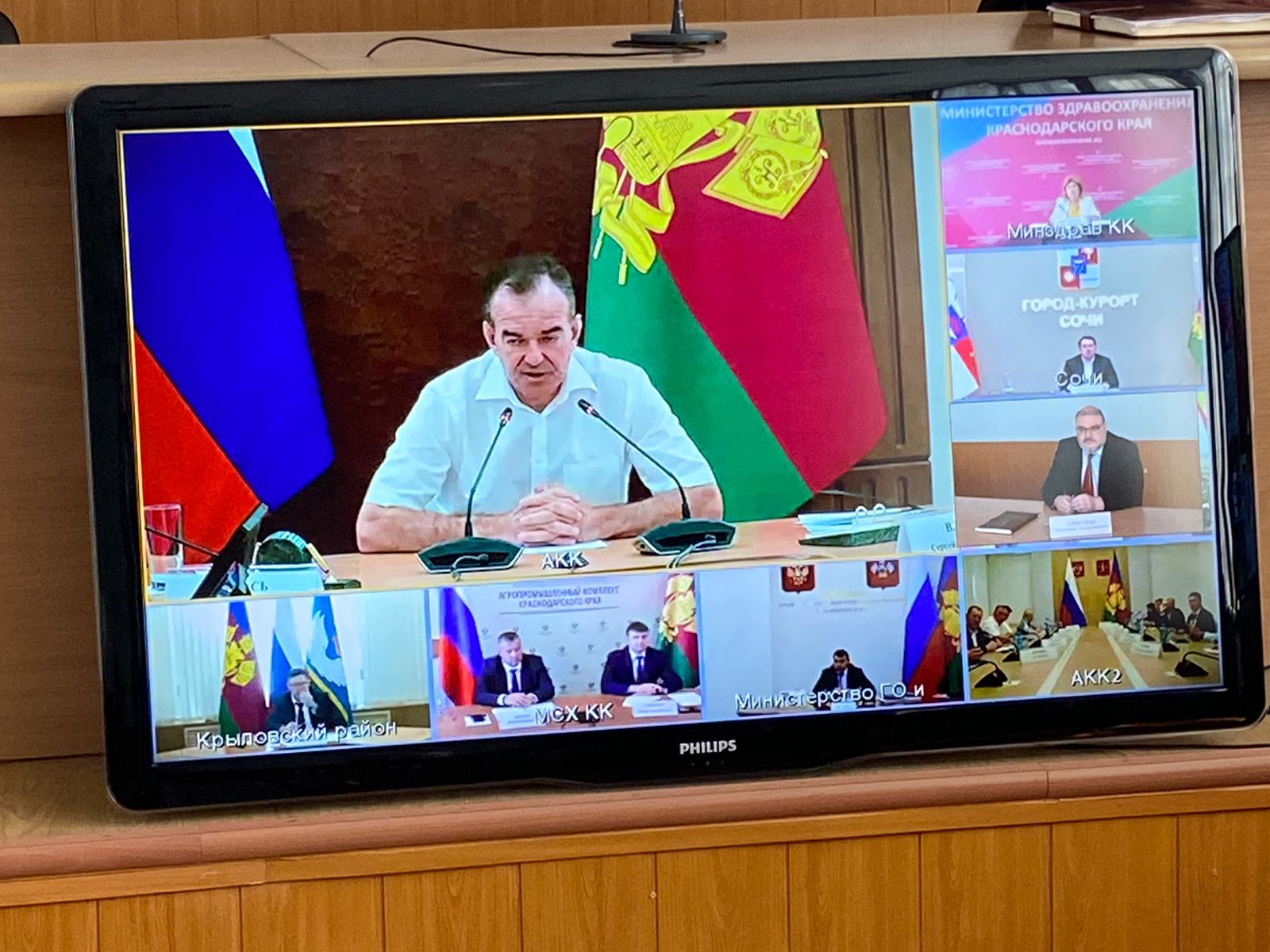 Глава администрации Новокубанского района Александр Гомодин принял участие в расширенном планерном совещании в режиме видеоконференции, на котором под председательством Губернатора Краснодарского края Вениамина Кондратьева были рассмотрены два важных вопроса. Первый из них был посвящен ситуации на рынке труда в регионе, о которой доложил министр труда и социального развития Сергей Гаркуша. Он подробно рассказал о текущей ситуации на рынке труда, о тенденциях и прогнозах развития данной сферы в ближайшее время.