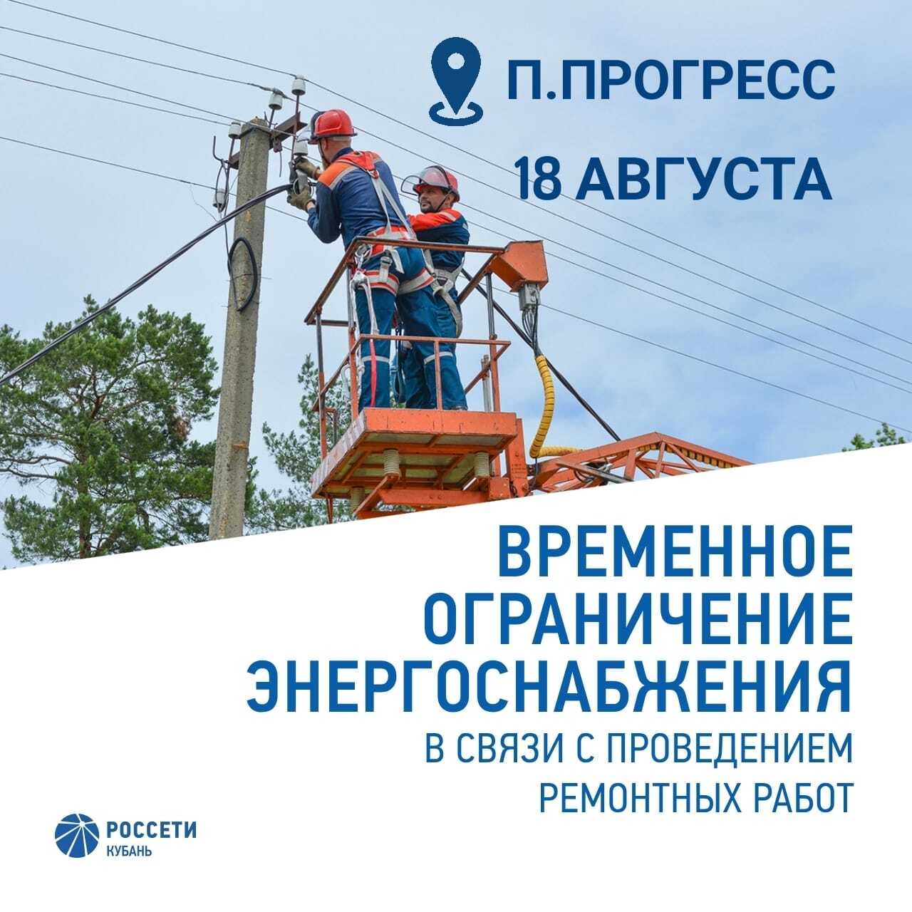 Новокубанский РЭС Армавирского филиала «Россети Кубань» информирует! В связи с плановыми работами на энергооборудовании планируется локальное временное ограничение подачи электроэнергии