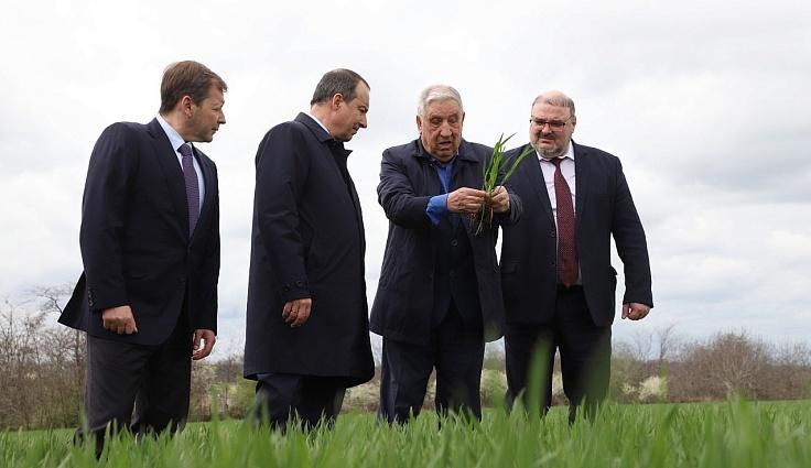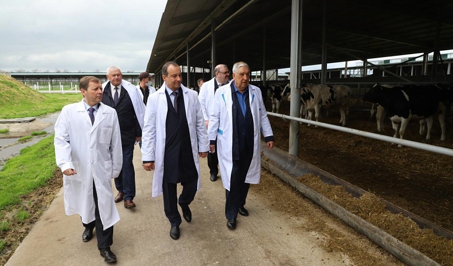 Его сопровождали председатель комитета по развитию АПК, продовольствию и потребительскому рынку Сергей Орленко, гендиректор агропредприятия Федор Булдыжов и глава муниципального образования Александр Гомодин.