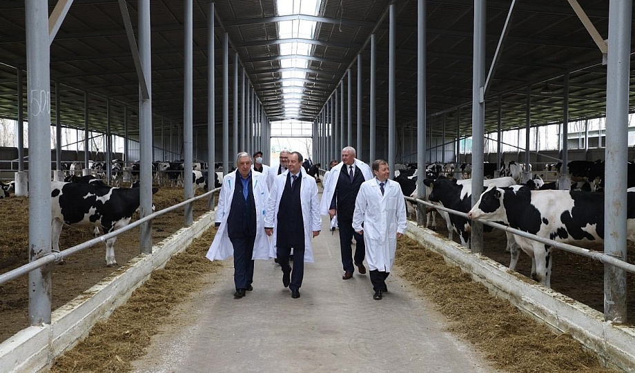 Первыми пунктами осмотра стали молочно-товарные фермы хозяйства. В них насчитывается в общей сложности более 4,3 тысячи голов крупного рогатого скота (КРС). Комплексы оснащены всем необходимым для содержания животных, имеют современные доильные залы, при уходе за стадом здесь используется технология беспривязного содержания и круглогодичного однотипного кормления. Основные виды работ автоматизированы и механизированы. На фермах проведена масштабная реконструкция, появились новые корпуса и производственные помещения.