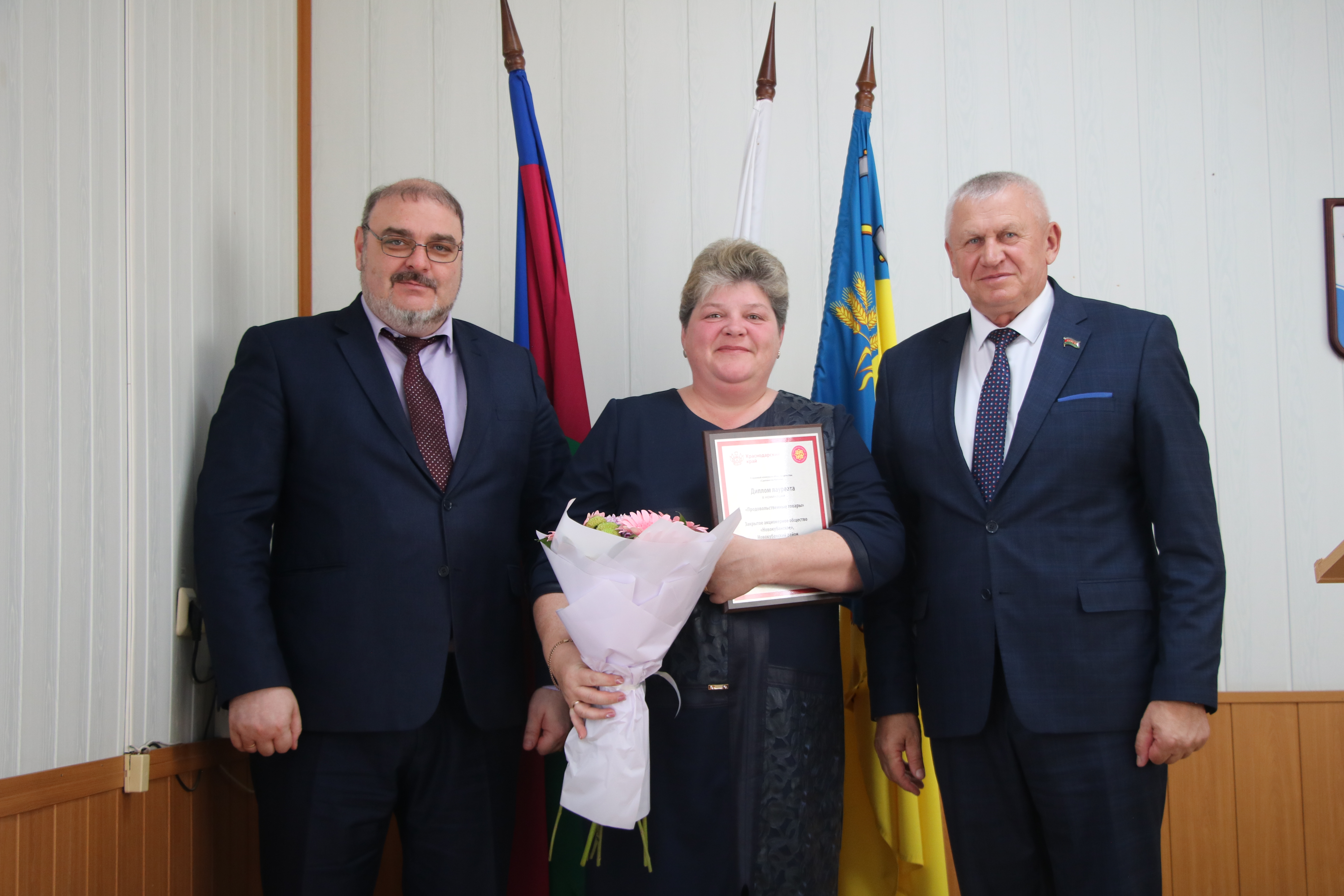 Завершилось планерное совещание на торжественной ноте. За победу в десятом краевом конкурсе в области качества «Сделано на Кубани» дипломом лауреата в номинации «Продовольственные товары» ЗАО «Новокубанское» наградили Любовь Максимову, а также юбиляров этого месяца.