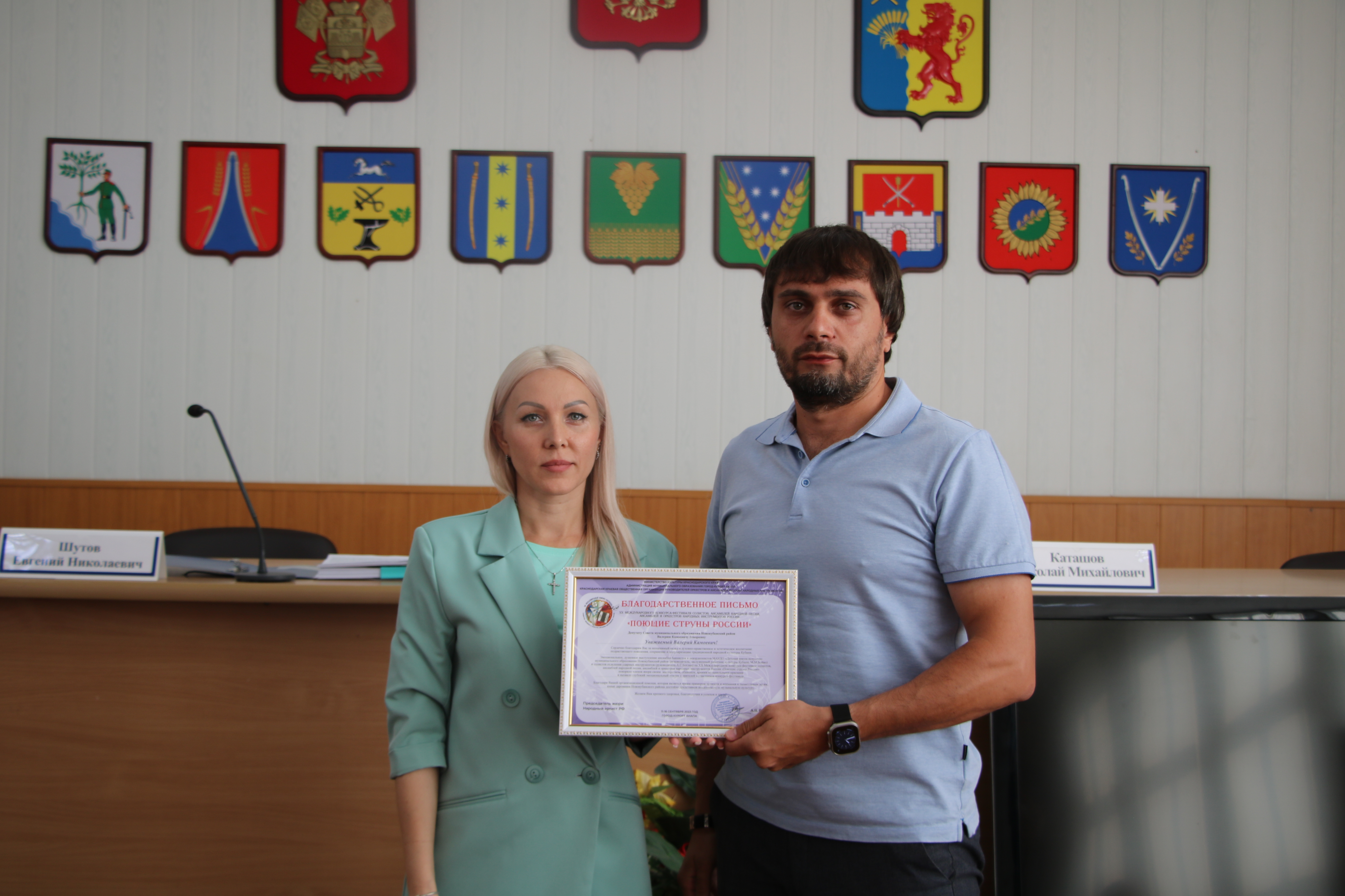 Благодарственными письмами от бессменного руководителя и председателя жюри - народного артиста Российской Федерации, профессора, художественного руководителя Краснодарского русского народного оркестра «Виртуозы Кубани» - Анатолия Яковлевича Винокура за неоценимый вклад в духовно-нравственное и эстетическое воспитание подрастающего поколения, сохранение и популяризацию традиционной народной культуры Кубани наградили главу муниципального образования Новокубанский район Александра Гомодина, председателя Совета муниципального образования Новокубанский район Евгения Шутова и депутатов Совета муниципального образования Новокубанский район.
