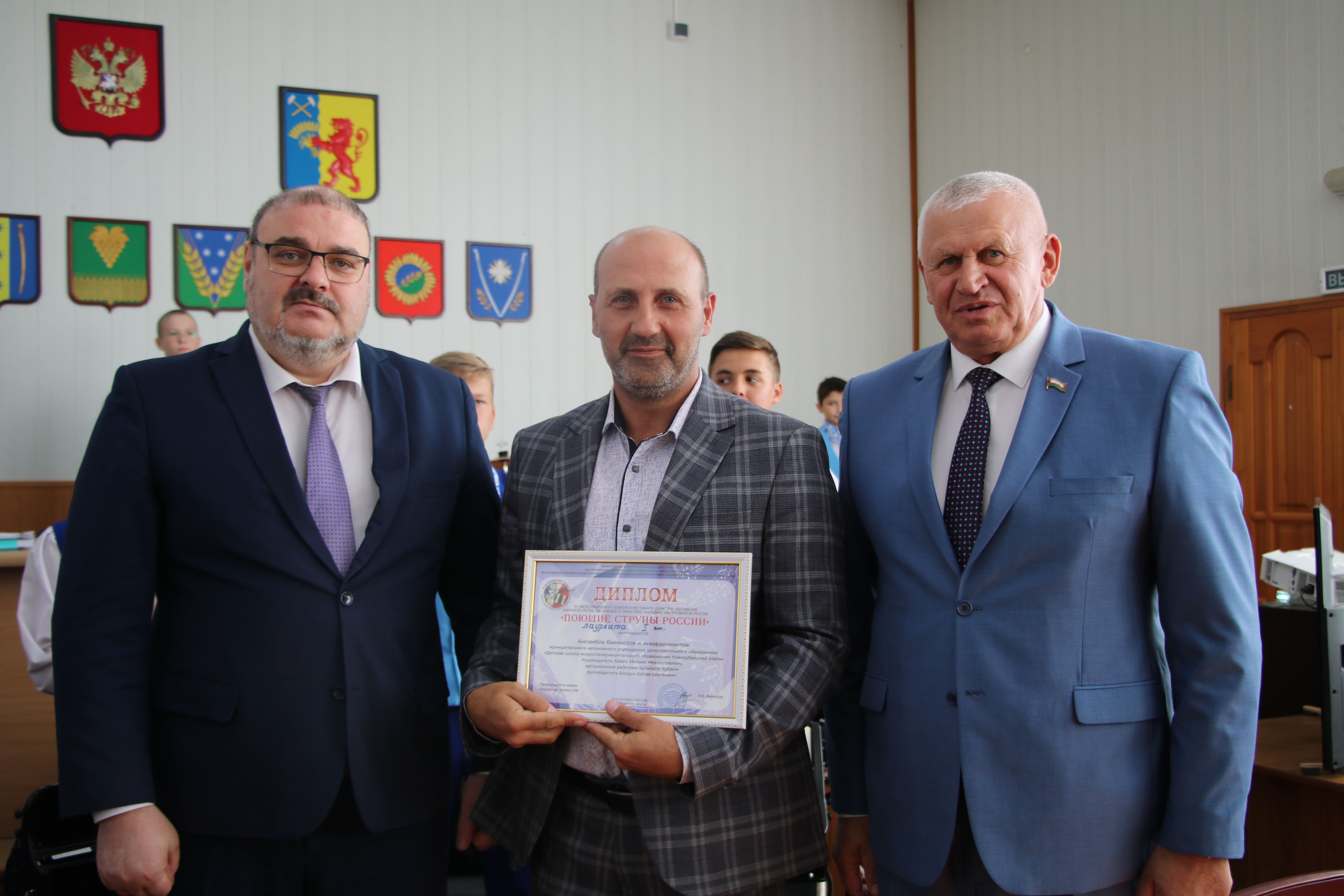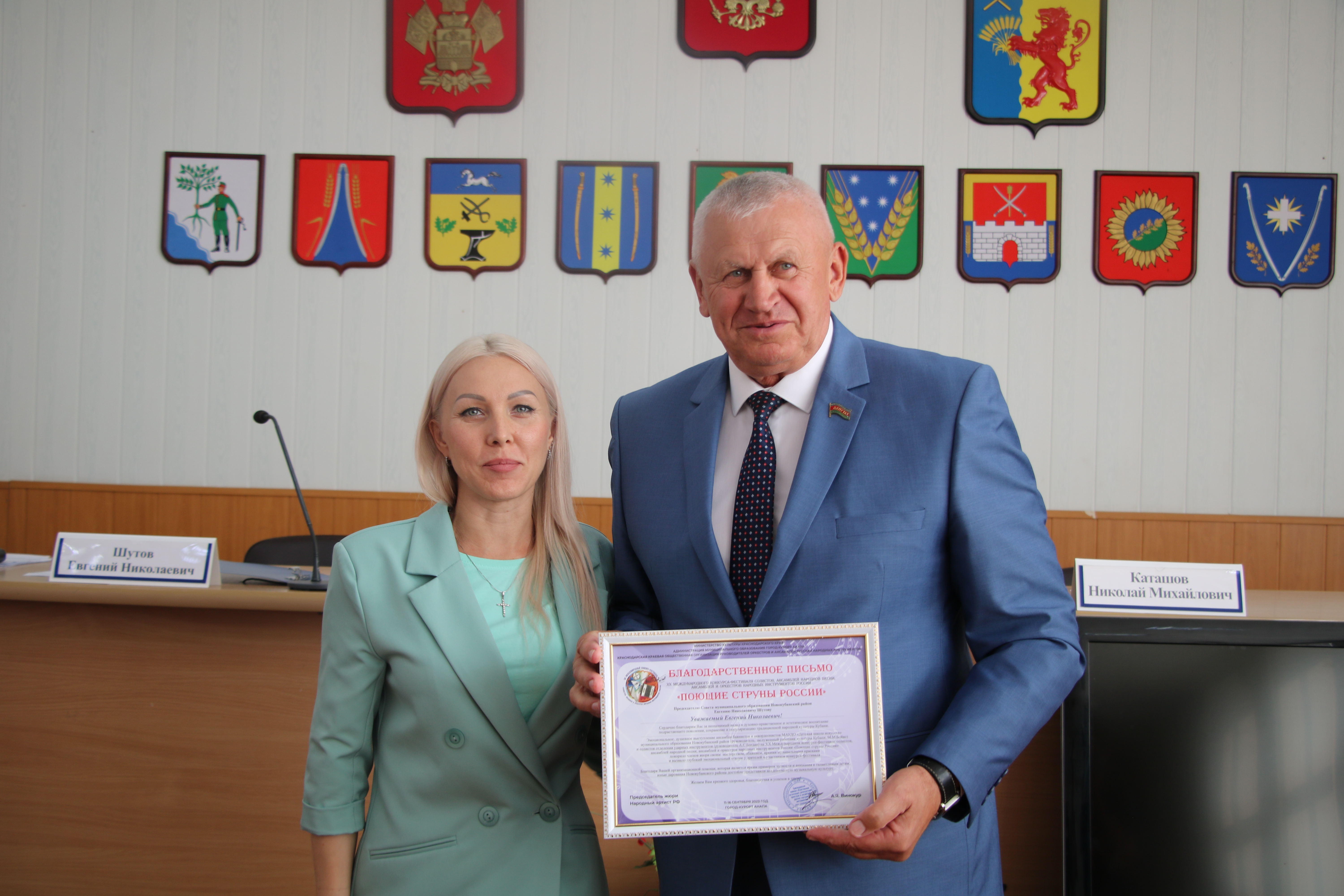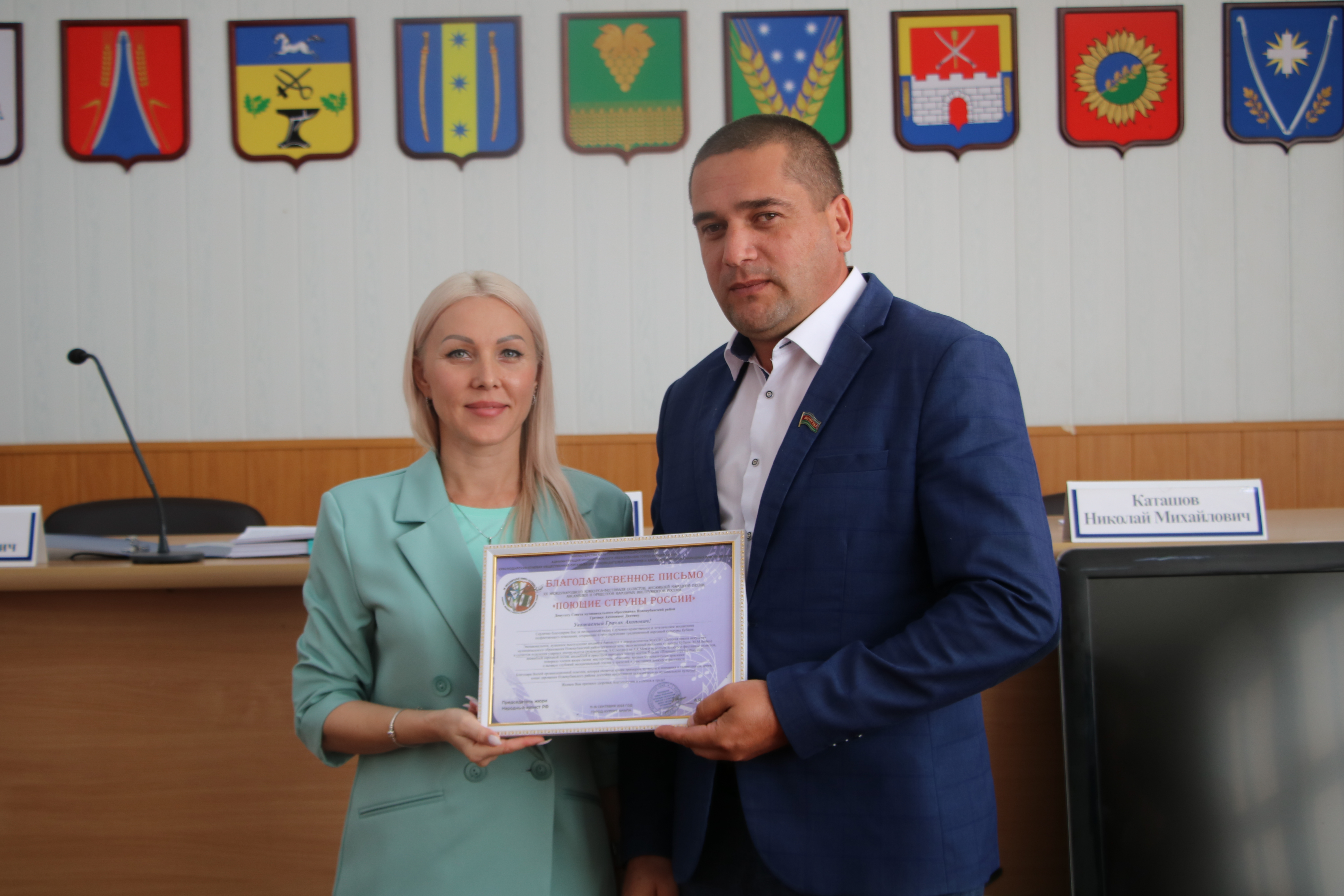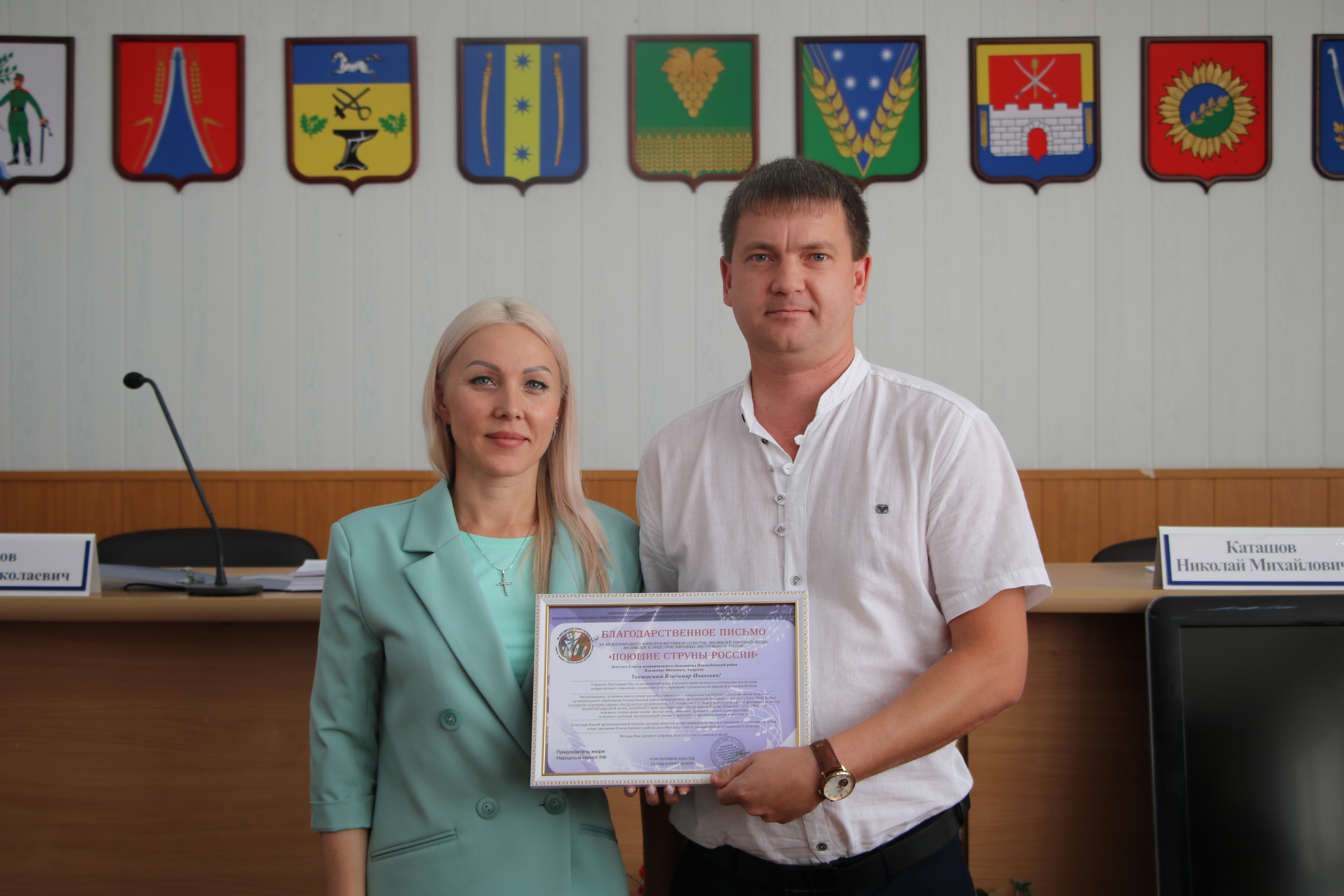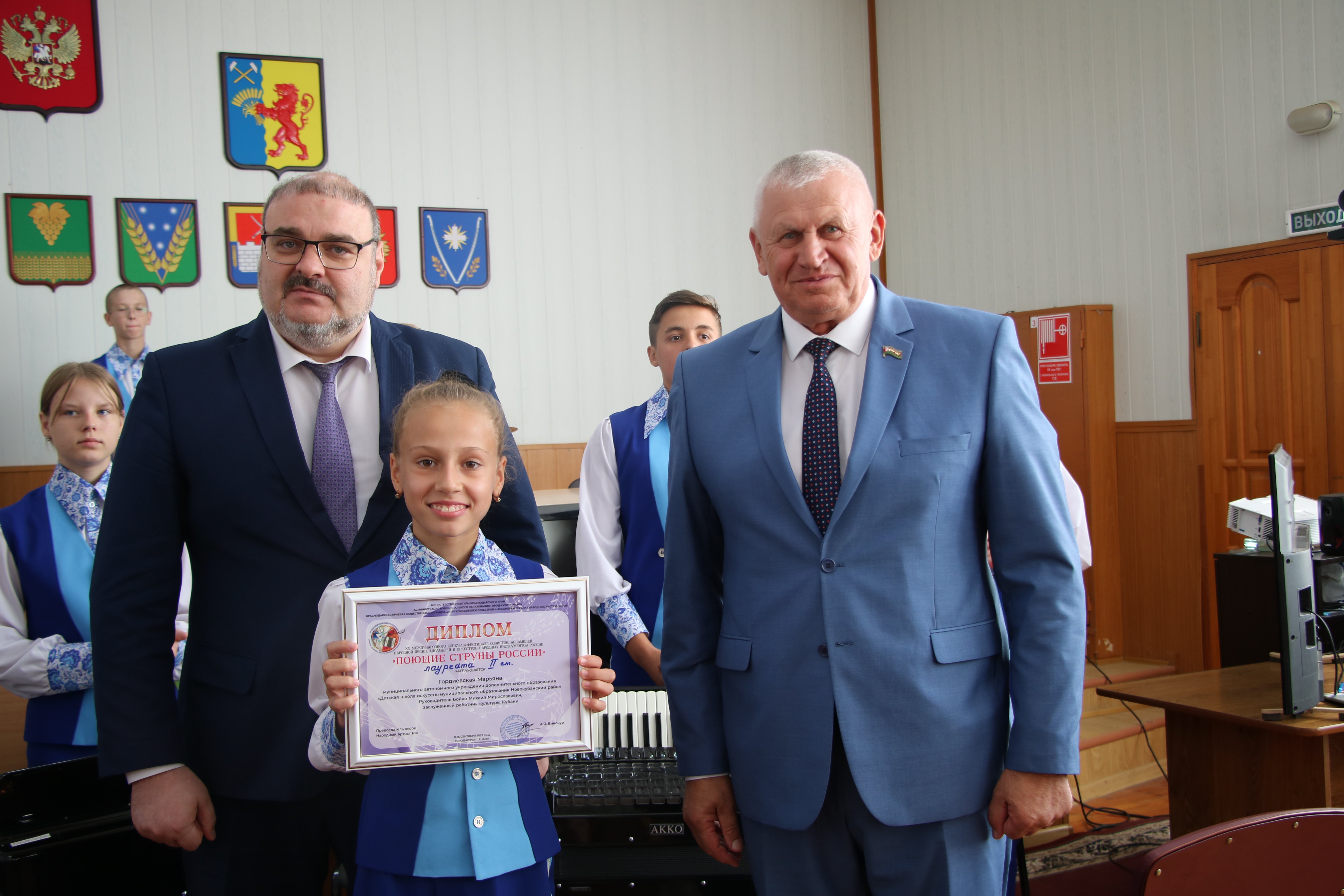 По окончании мероприятия глава муниципалитета совместно с председателем Совета наградили дипломами Лауреата II степени XX- ого Международного конкурса-фестиваля «Поющие струны России» Гордиевскую Марьяну, Вехова Юрия и вручили диплом Лауреата I степени Ансамблю баянистов и аккордеонистов.