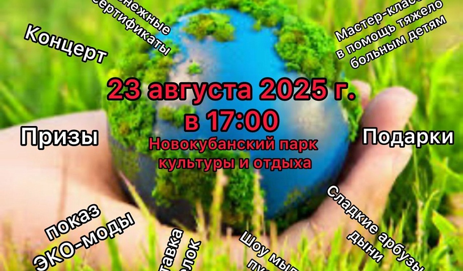 Администрация муниципального образования Новокубанского района совместно с БФ «Крошка Мирошка» приглашает вас 23 августа в 17:00 в Городской парк на захватывающий семейный эко-фестиваль!