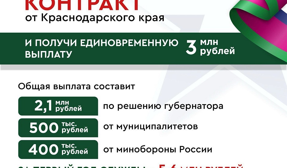 💰 Единовременная выплата только в Краснодарском крае: 3 млн. рублей, из них: