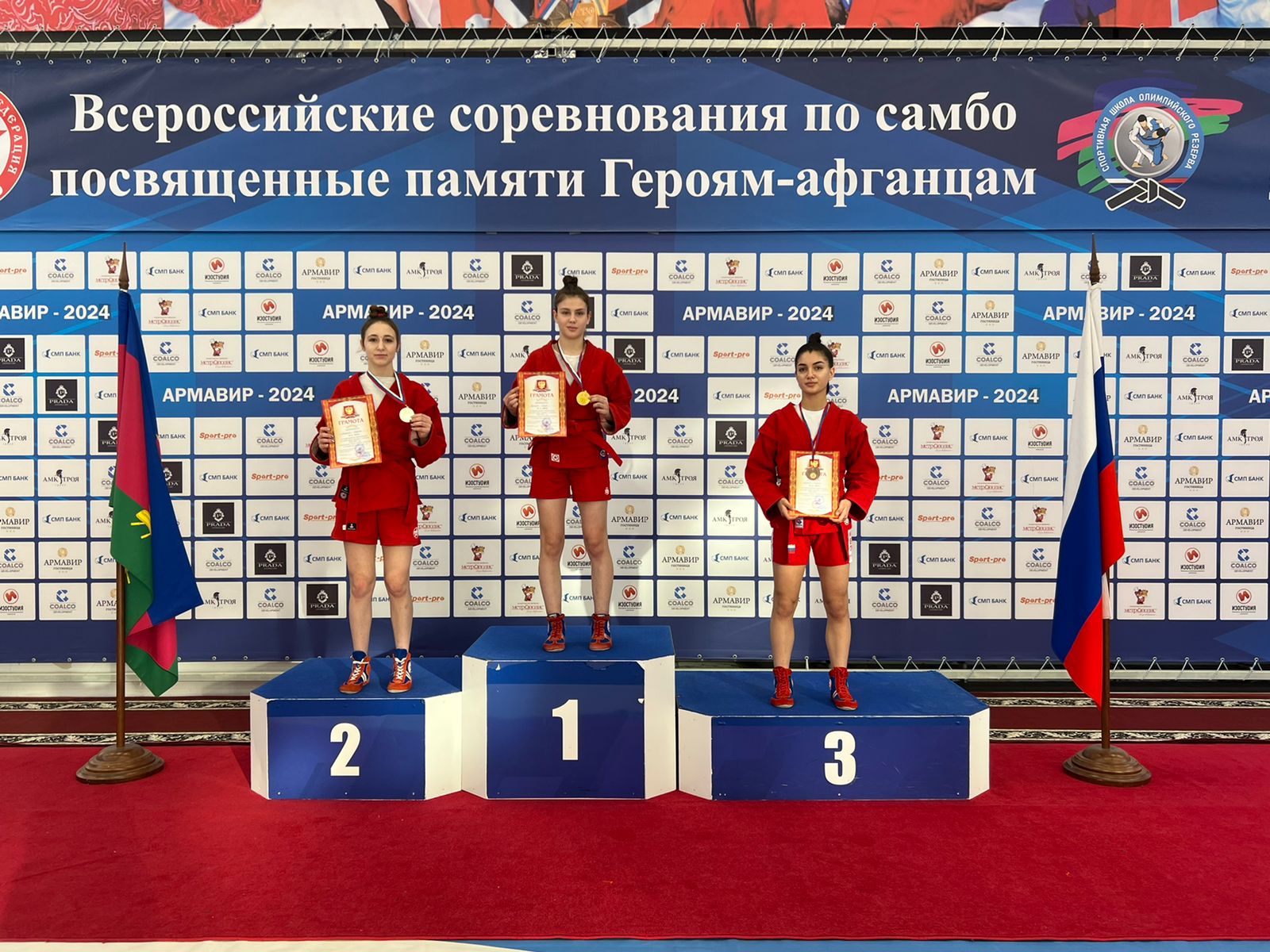 С 15 по 16 декабря в Армавире прошли Всероссийские соревнования по самбо среди юниоров и юниорок 2005-2007 годов рождения, посвященные памяти Воинов-Афганцев. В соревнованиях приняли участие более 200 спортсменов из 20 регионов нашей страны. В числе участников были и учащиеся отделения борьбы МАУ ДО СШ "Олимп" им. М.В.Канищева г.Новокубанска.Наши самбистки успешно выступили и завоевали три первых, одно второе и одно третье места. Победительницами стали Кива Ева в весовой категории до 72 кг (тренер-преподаватель Коневцова Татьяна Владимировна), Кульченко Элина в весовой категории до 50 кг (тренер- преподаватель Джагарян Норик Саркисович) и Кажаурова Ангелина в весовой категории до 54 кг.