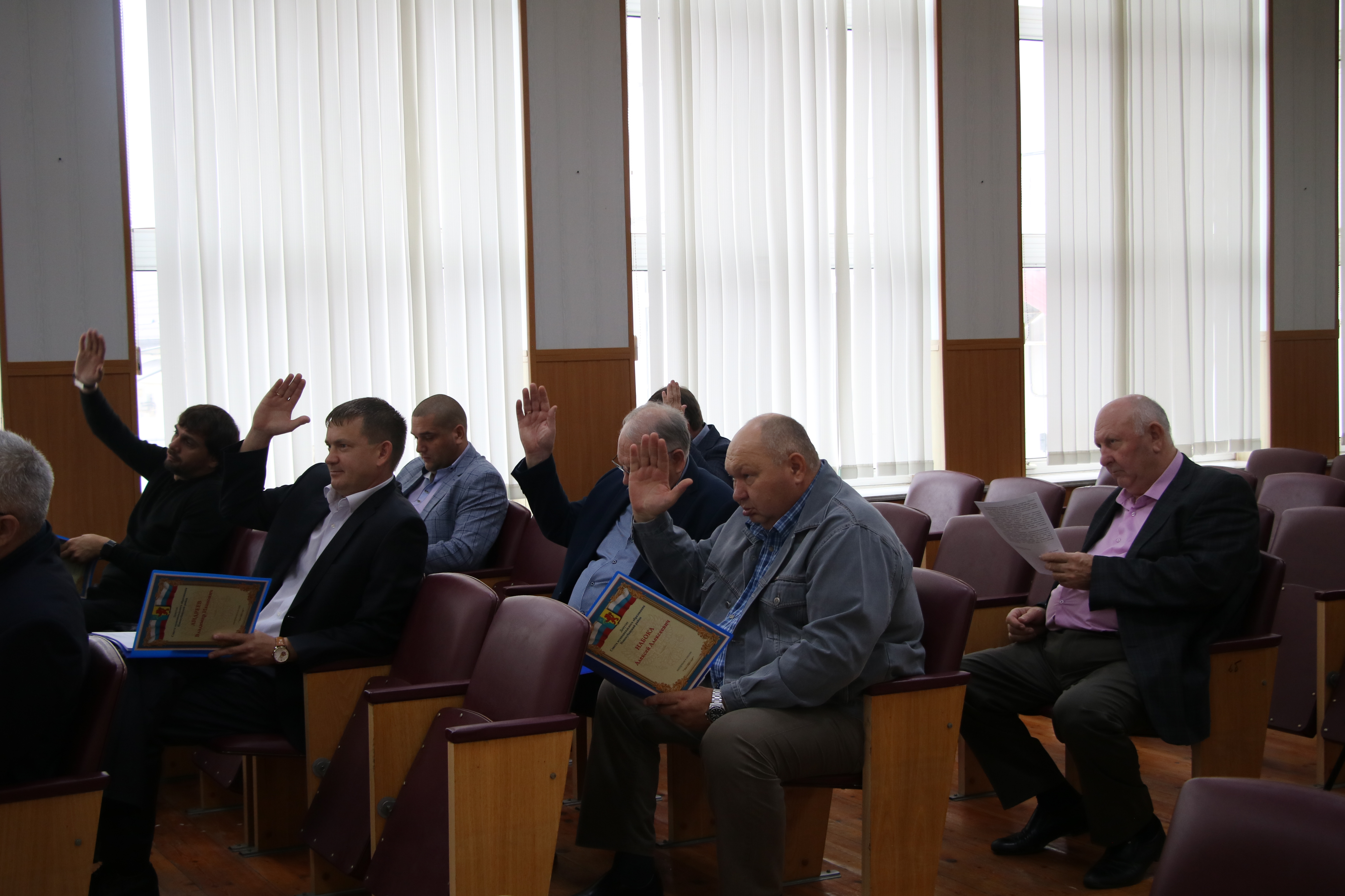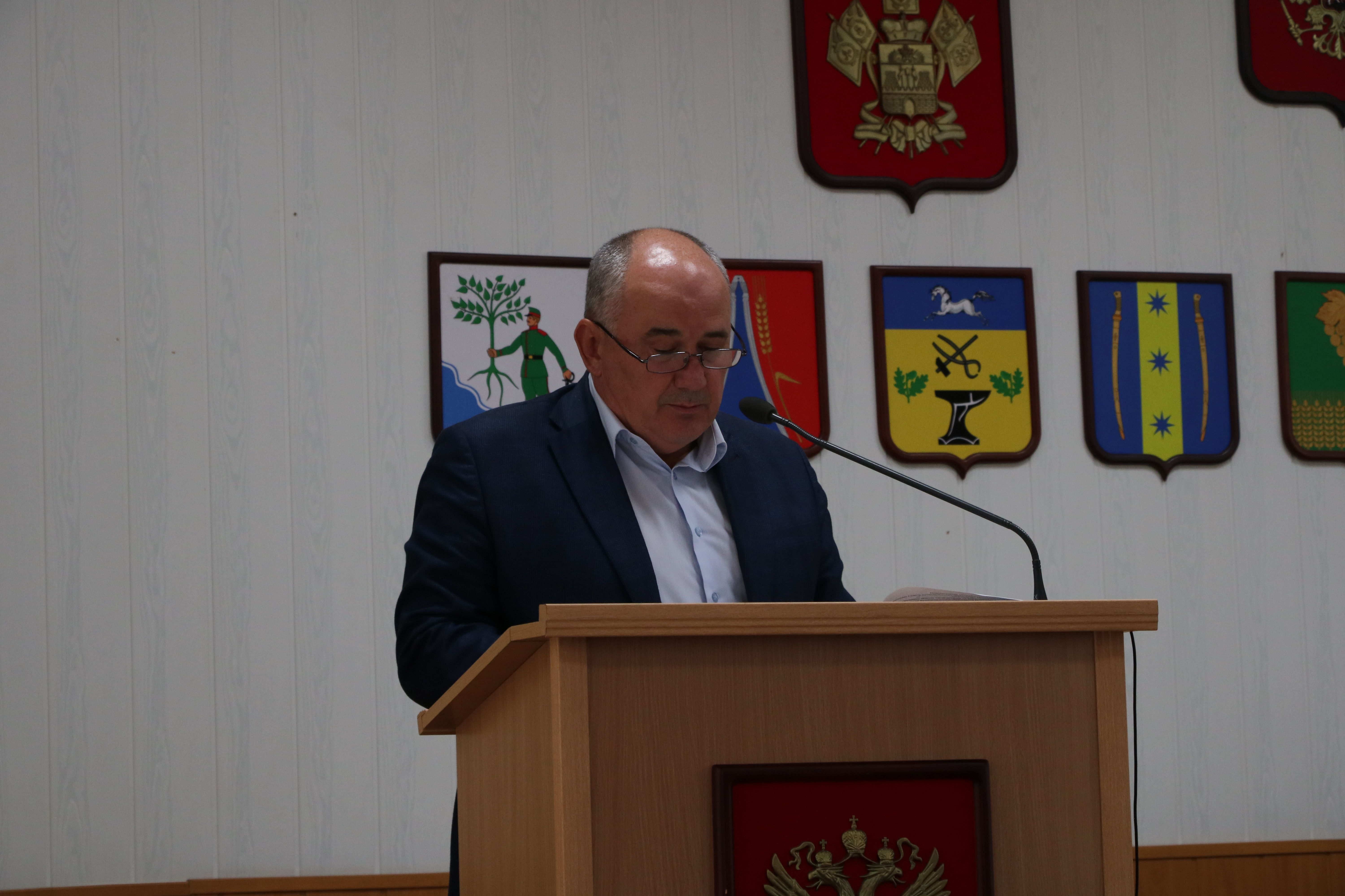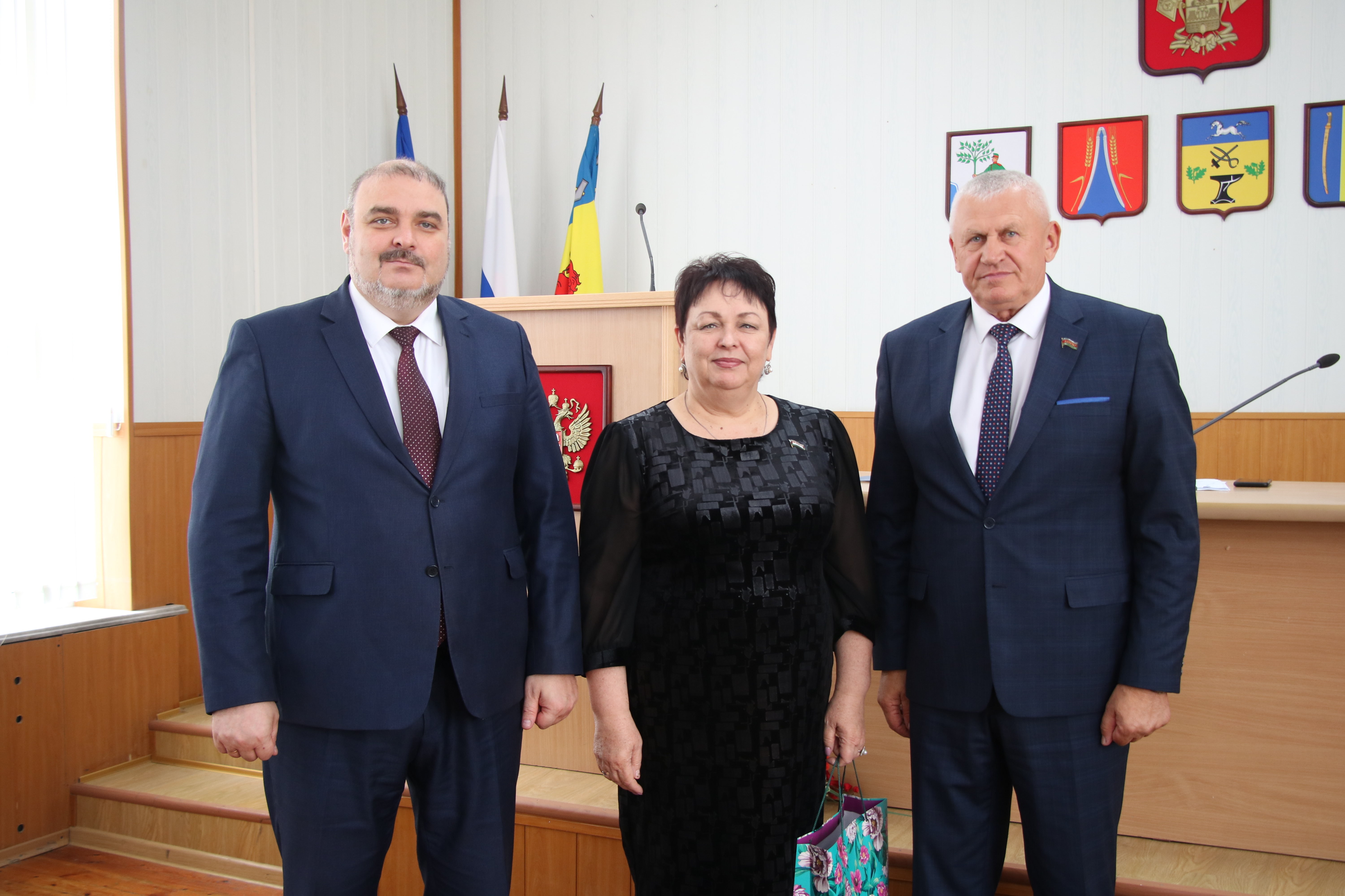 В президиум заседания вошли глава Новокубанского района Александр Гомодин, председатель Совета Евгений Шутов и прокурор Новокубанского района Николай Каташов.