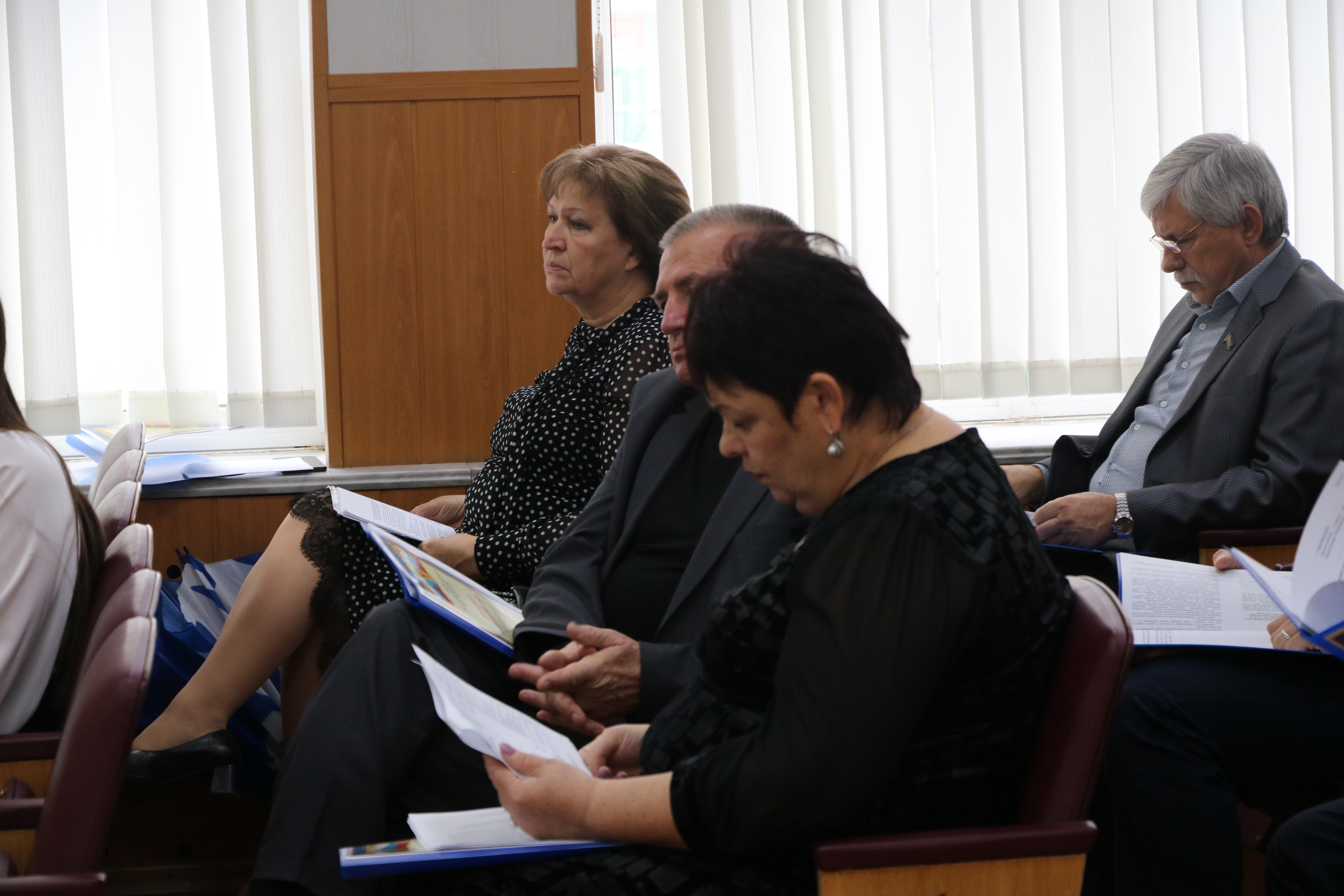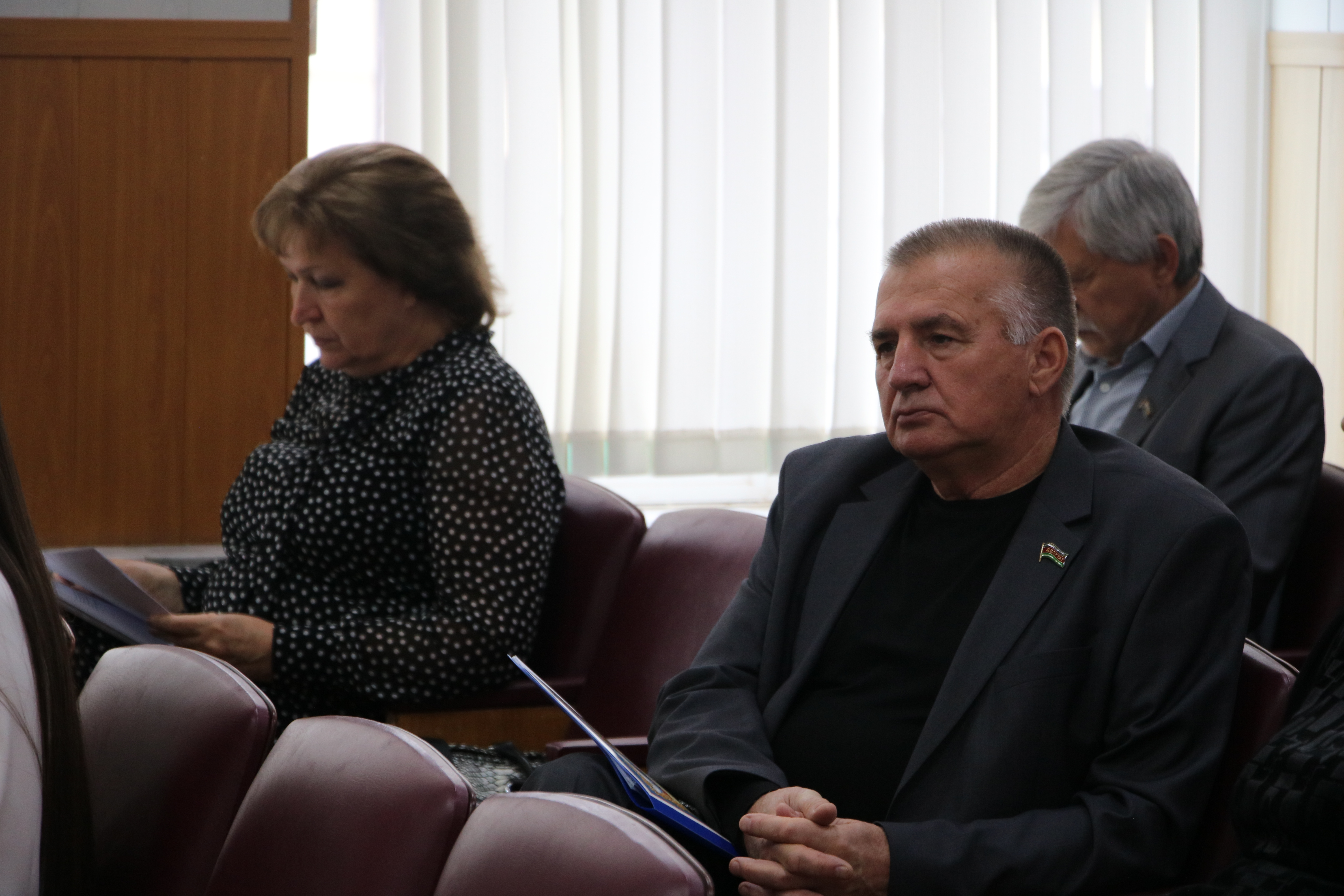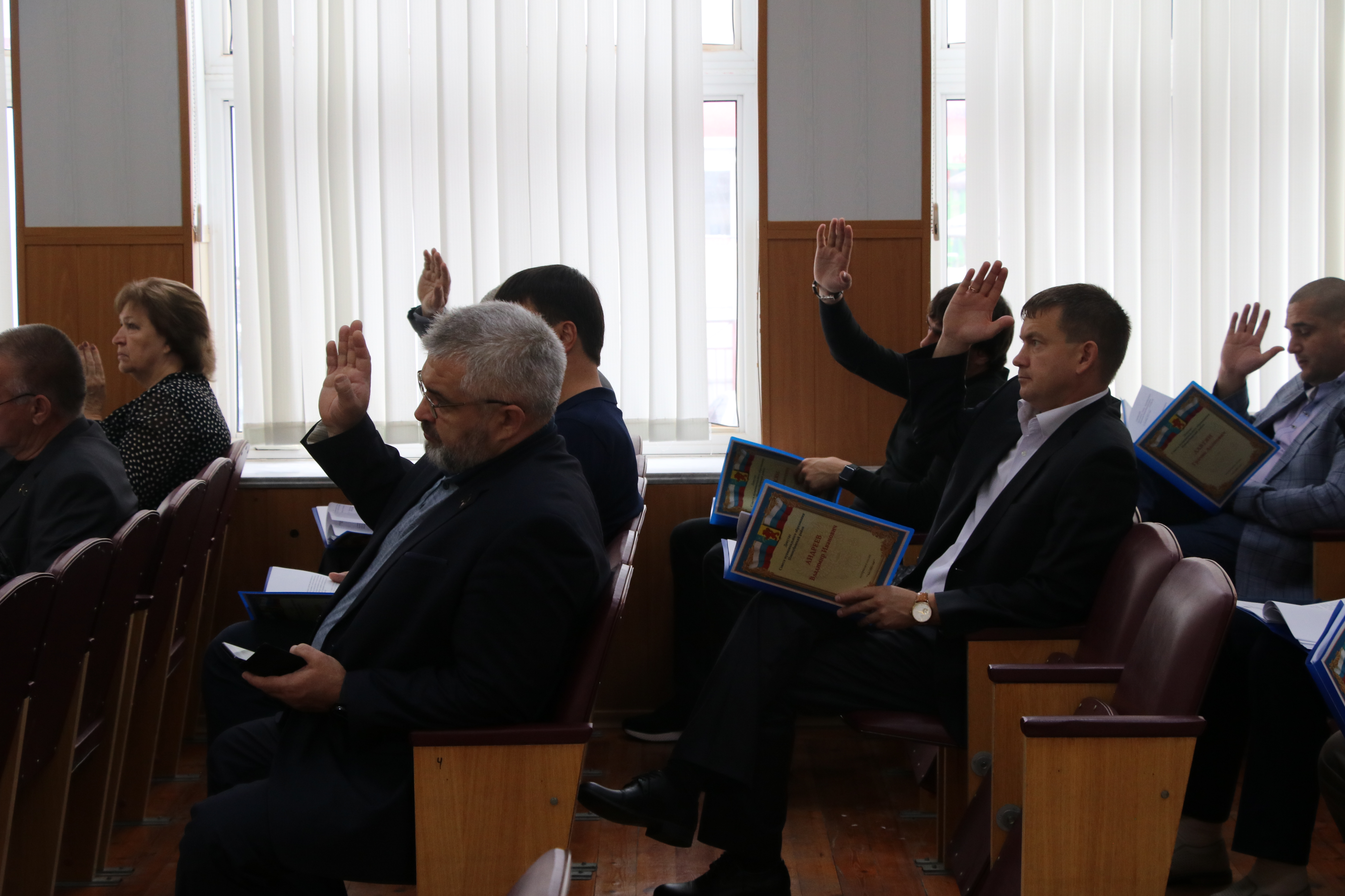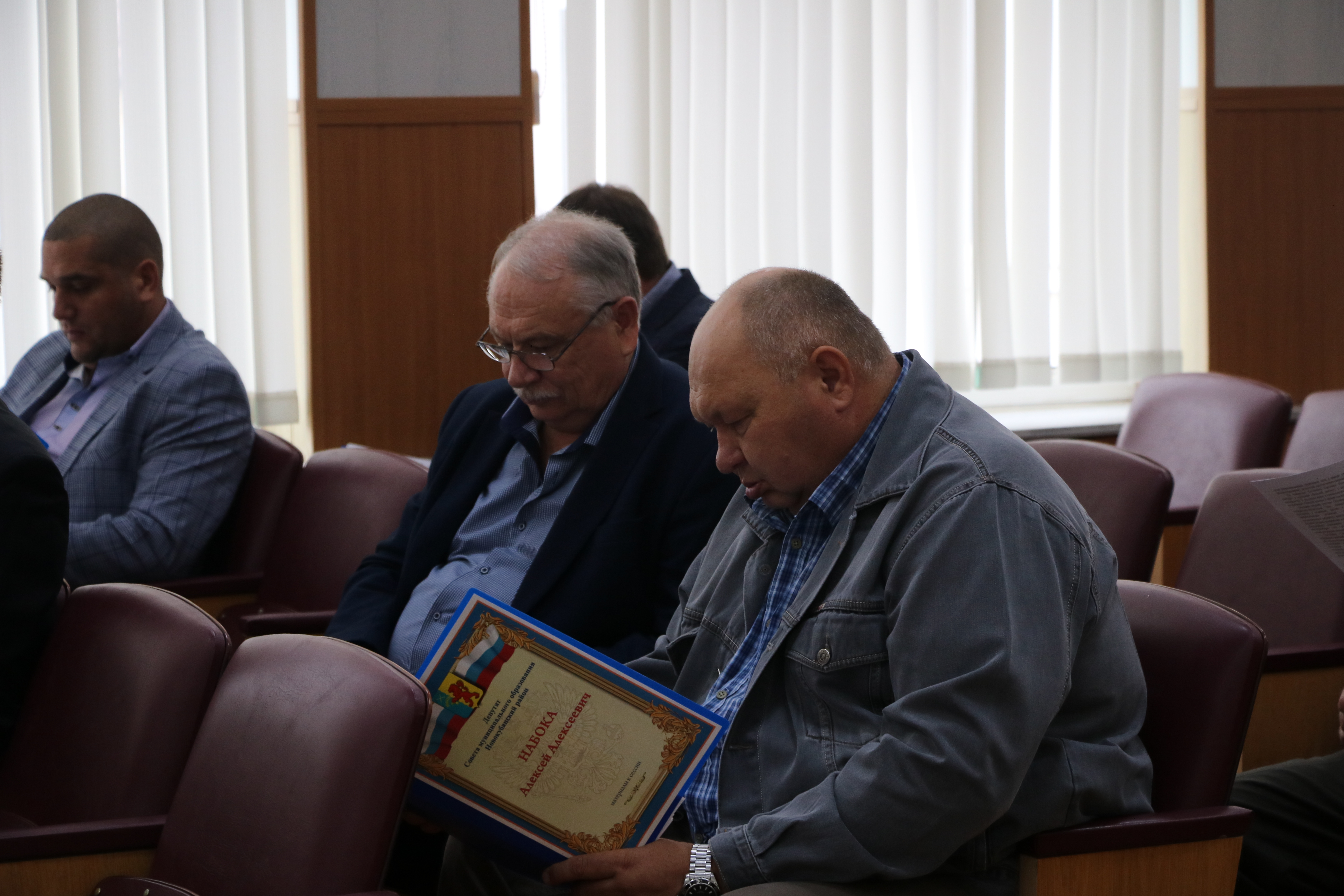 В президиум заседания вошли глава Новокубанского района Александр Гомодин, председатель Совета Евгений Шутов и прокурор Новокубанского района Николай Каташов.