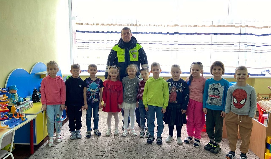 Инспектор ДПС напомнил дошколятам о правильном и безопасном переходе проезжей части по регулируемым и нерегулируемым пешеходным переходам, о правилах безопасной езды на велосипеде и СИМ и об использовании детских удерживающих устройств при передвижении в автомобиле.