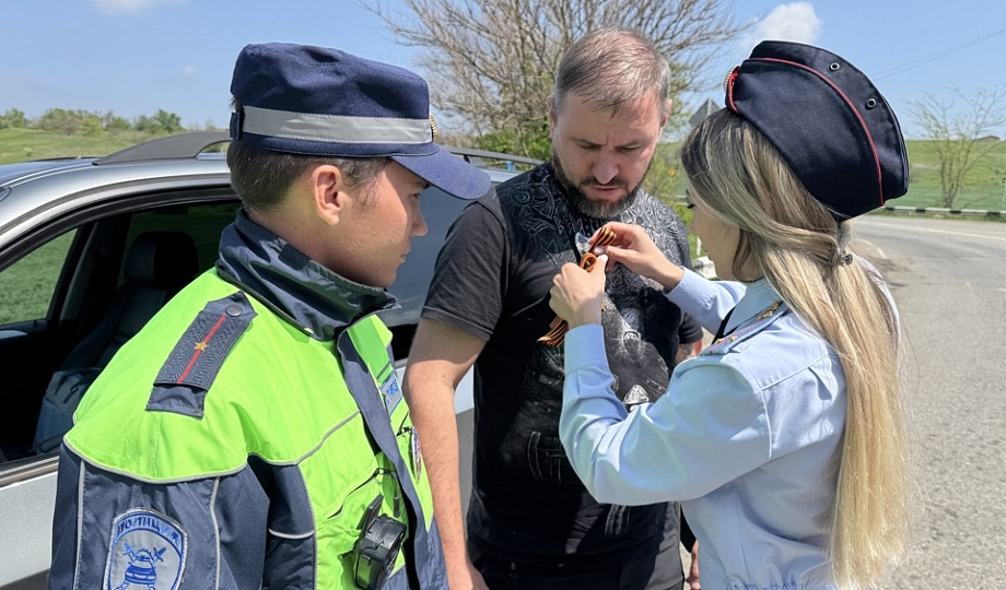 Сотрудники Госавтоинспекции Новокубанского района присоединились к акции «Георгиевская ленточка»