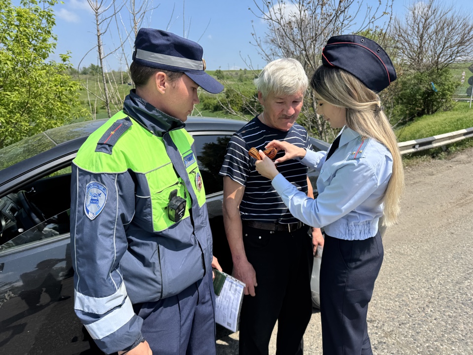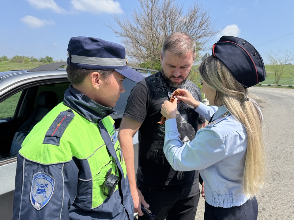 Сотрудники Госавтоинспекции Новокубанского района присоединились к акции «Георгиевская ленточка»