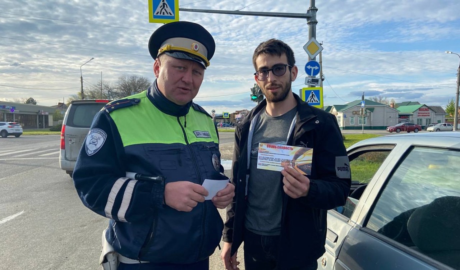 Сотрудники Госавтоинспекции Новокубанского района в рамках профилактической акции «МОТО-ВЕЛО-СИМ» провели акцию «Сбавь скорость!» для водителей