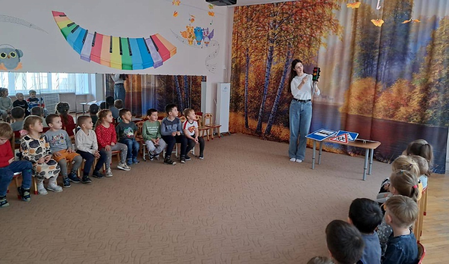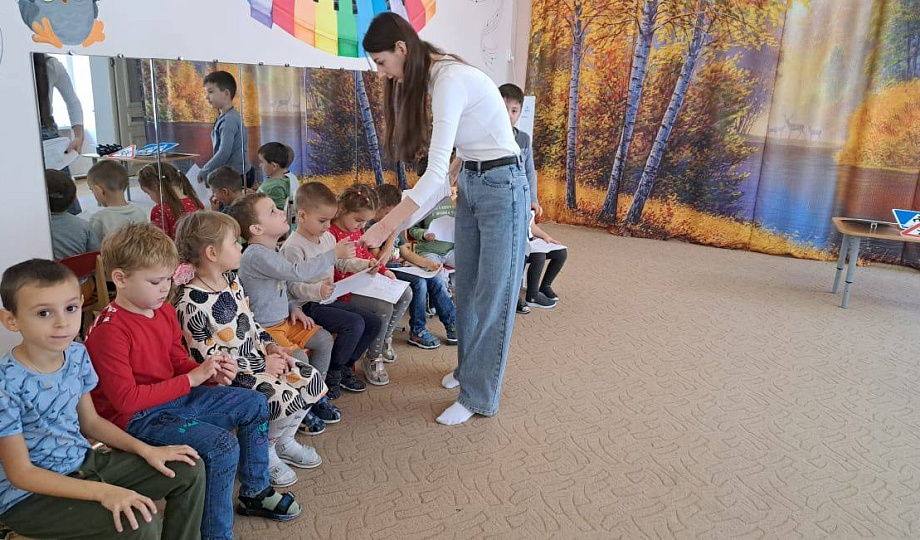 Детям разъяснили правила дорожного движения, показали и рассказали значения дорожных знаков. По окончании беседы девчонкам и мальчишкам дали задание раскрасить все изученные знаки цветными карандашами.