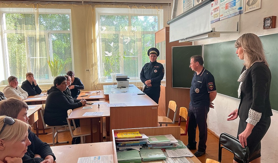 Старший инспектор ДПС старший лейтенант полиции Филиппов Н.А. и старший инспектор ОПДН ОУУП и ПДН ОМВД России по Новокубанскому району майор полиции Савенков Ю.А. в преддверии летних каникул посетили родительское собрание в МОБУООШ 26 им. В.Я. Первицкого х. Роте-Фано Новокубанского района.
