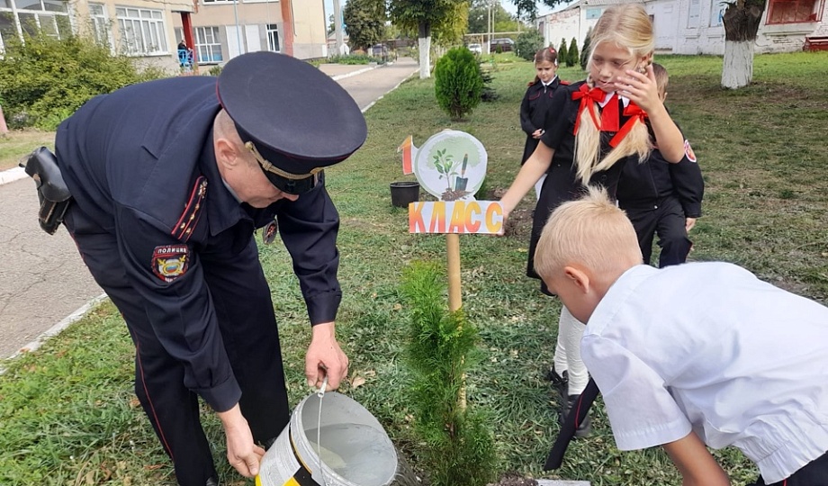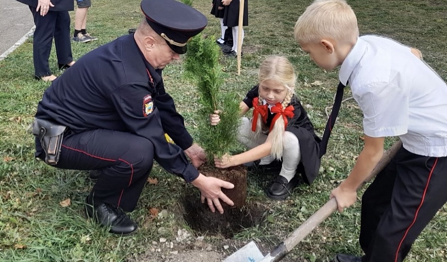 В рамках акции учащиеся 1 класса МОБУООШ № 12 им. К.А. Флеер с. Новосельского, с классным руководителем Татьяной Кулик, советником директора по воспитанию и взаимодействию с детскими общественными объединениями Натальей Роот и участковым уполномоченным Отдела МВД России по Новокубанскому району капитаном полиции Евгением Кашиным высадили на территории школы хвойные деревья.
