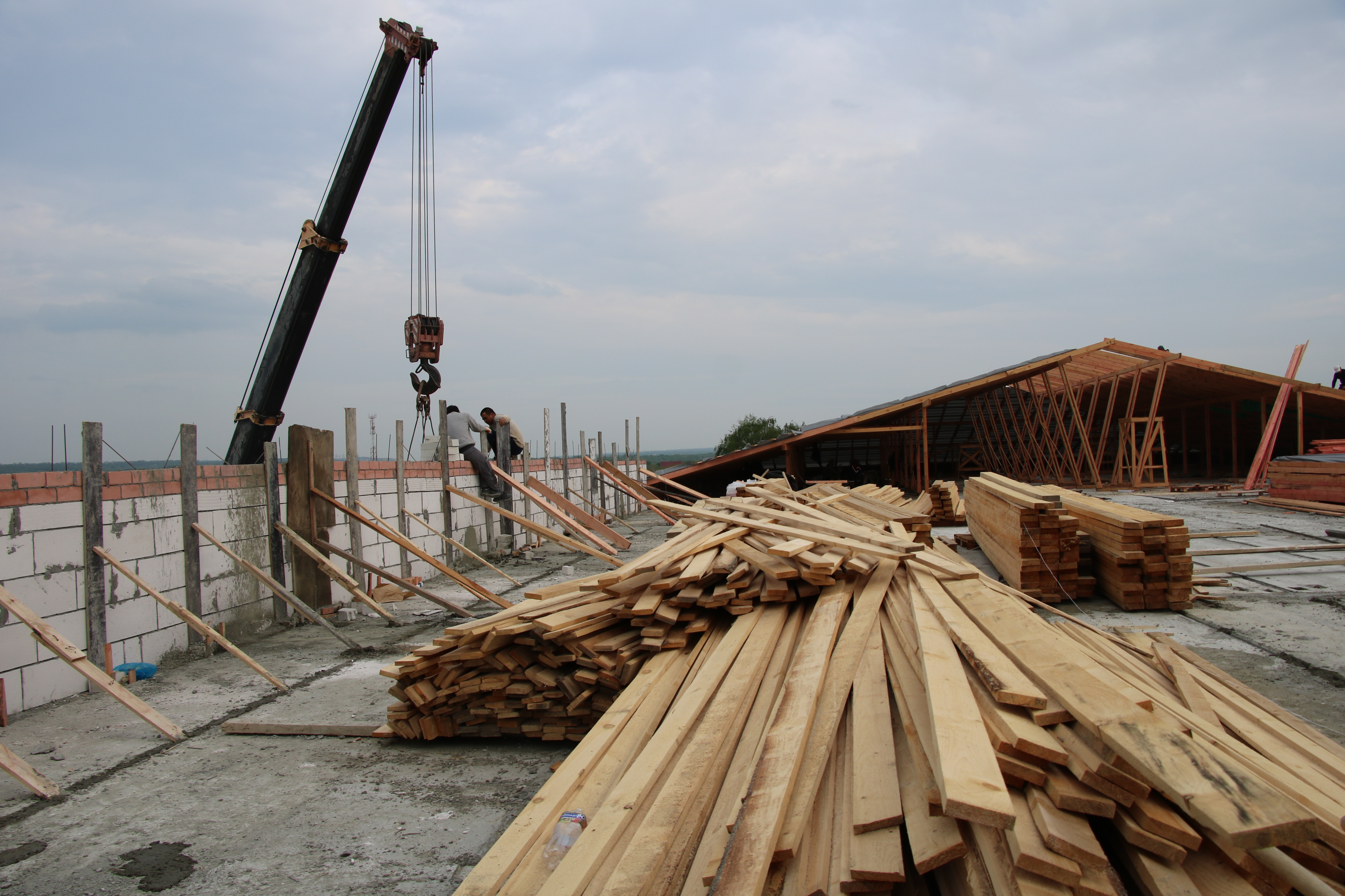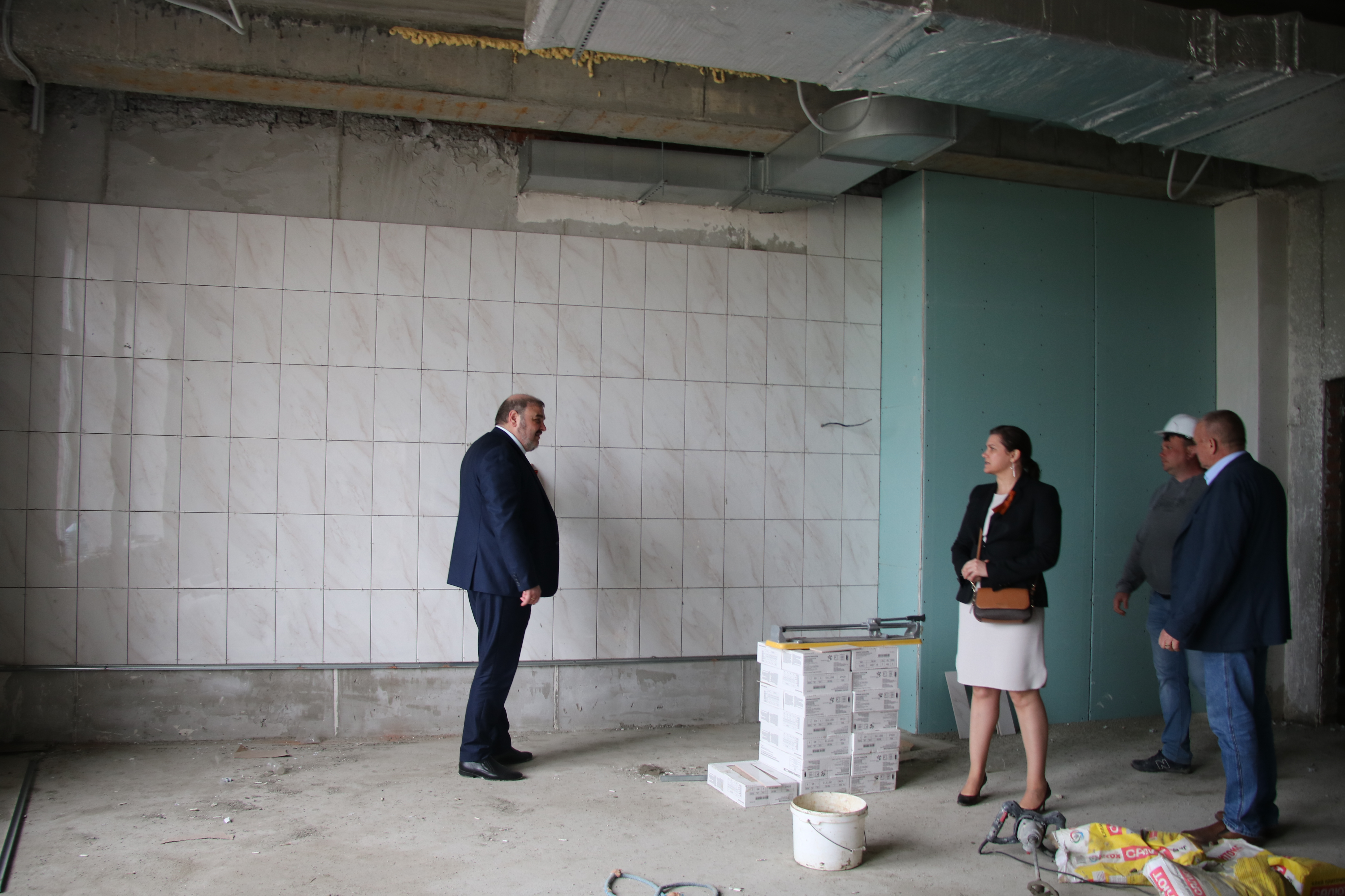 К настоящему моменту закончено возведение фасадов здания, в течение этой недели будут завершены штукатурные работы, уже положено 1200 квадратных метров плитки будущего пищеблока.