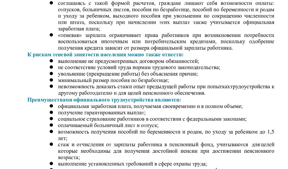 Памятка работнику о негативных последствиях теневой занятости