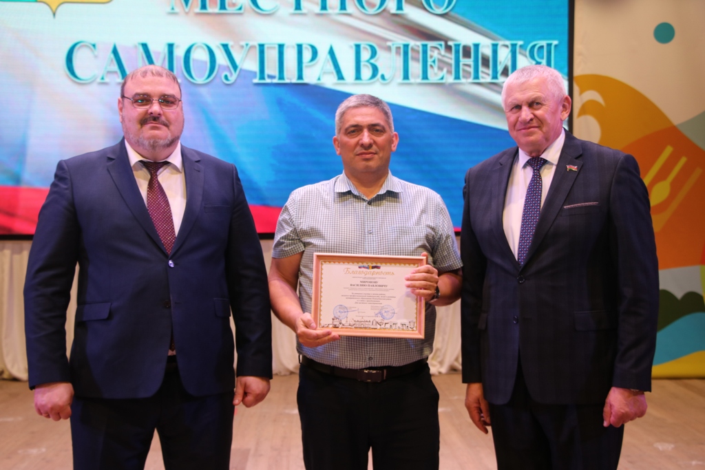 Александр Владимирович вместе с председателем Совета МО Новокубанский район Евгением Шутовым выполнили почетную миссию - вручили Благодарности губернатора Краснодарского края, Благодарственные письма постоянного комитета Законодательного собрания Краснодарского края, Почетные грамоты и Благодарности администрации и Совета муниципального образования Новокубанский район.