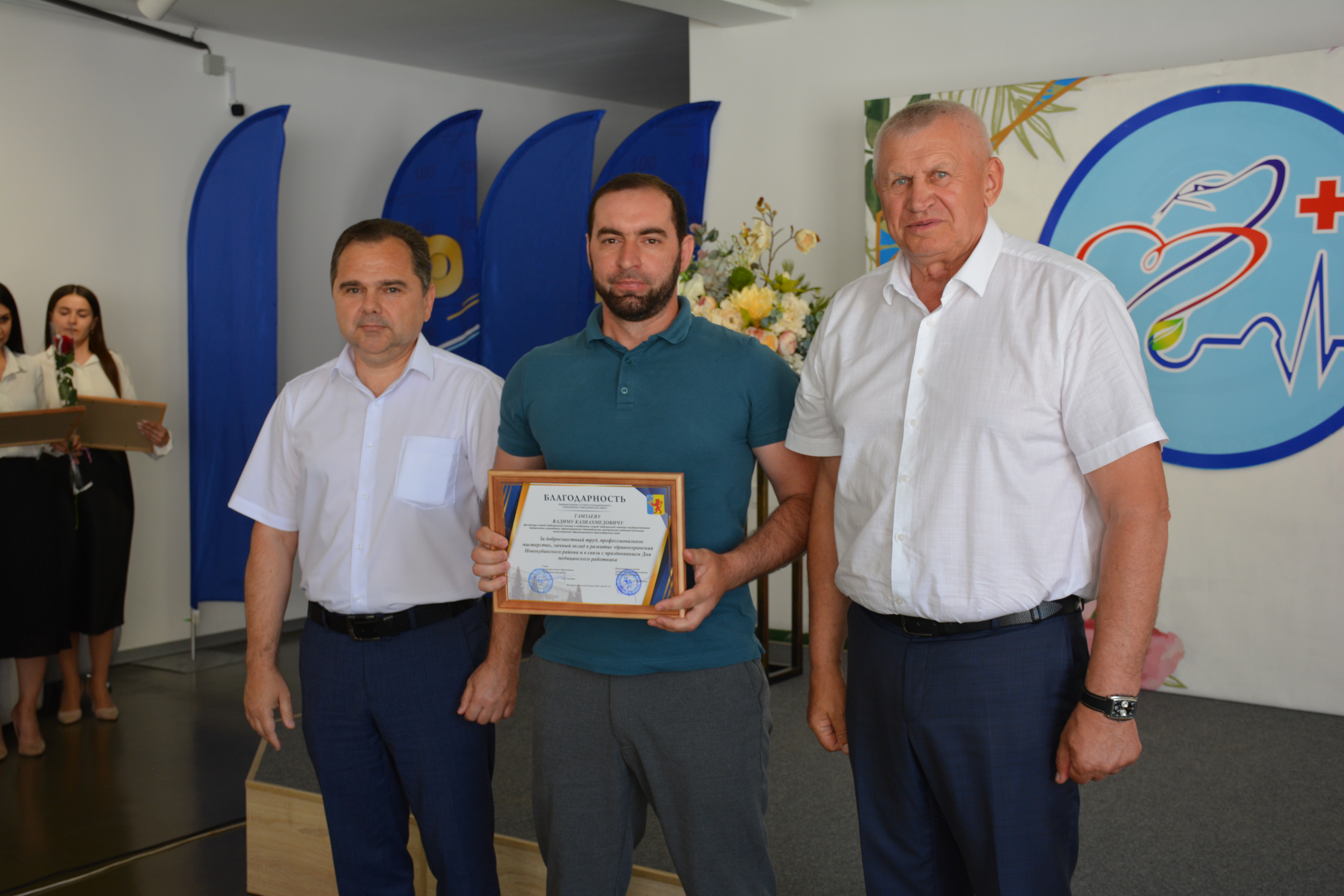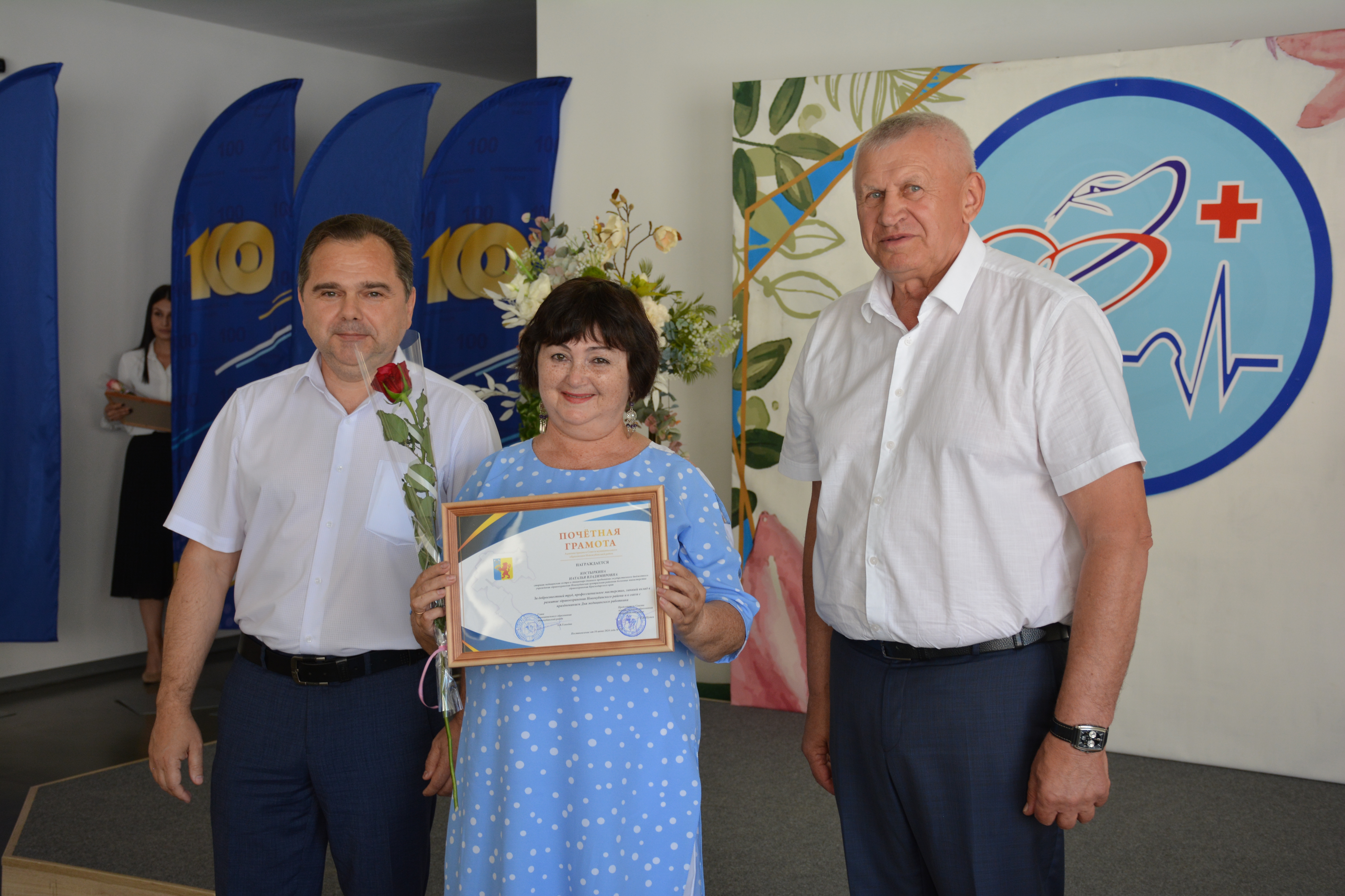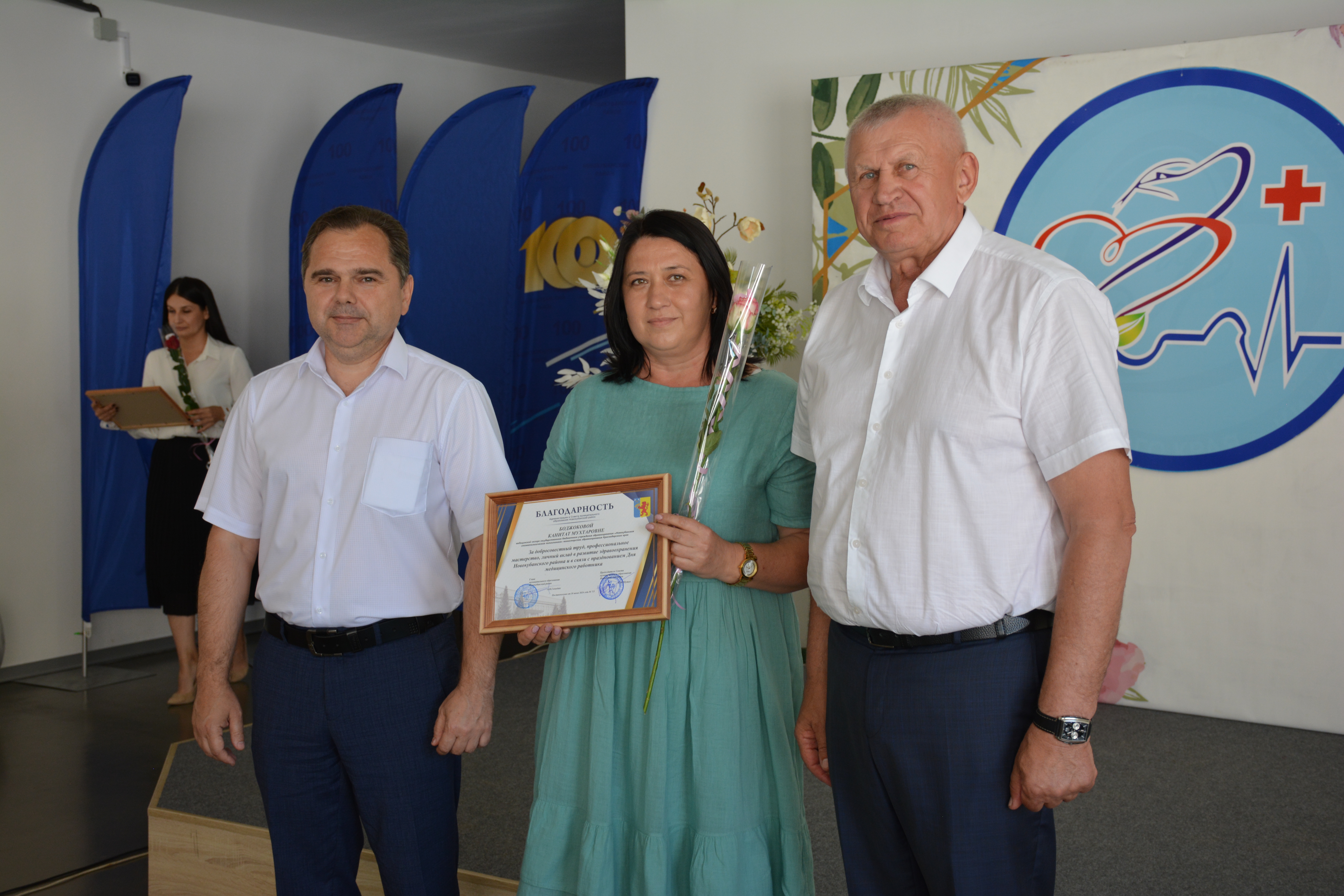 Также за достигнутые успехи в деле медицинского обслуживания населения и в честь праздника были награждены Почетными грамотами и Благодарностями сотрудники ГБУЗ «Новокубанская ЦРБ»и ГБУЗ «Новокубанская стоматологическая поликлиника».