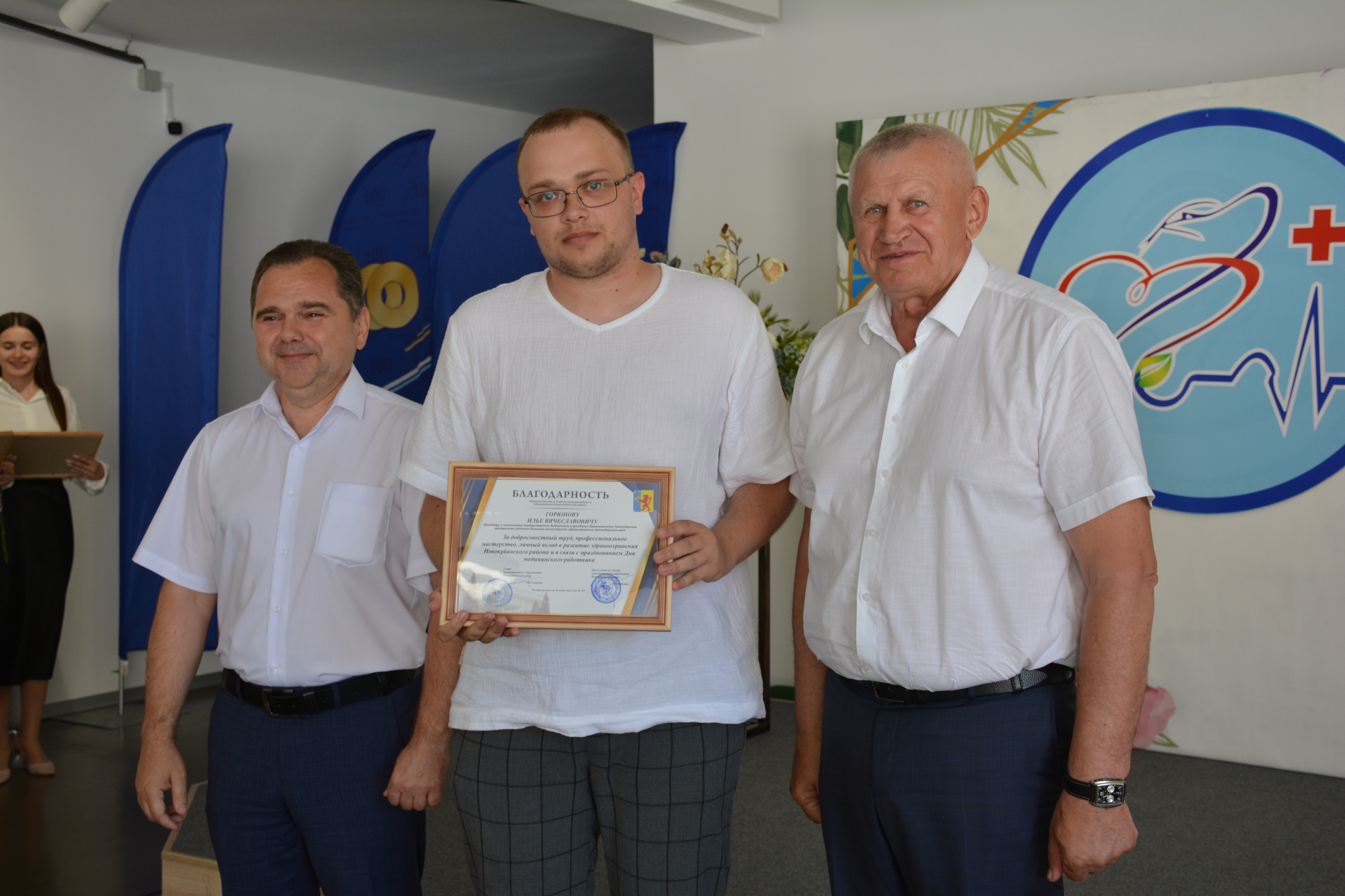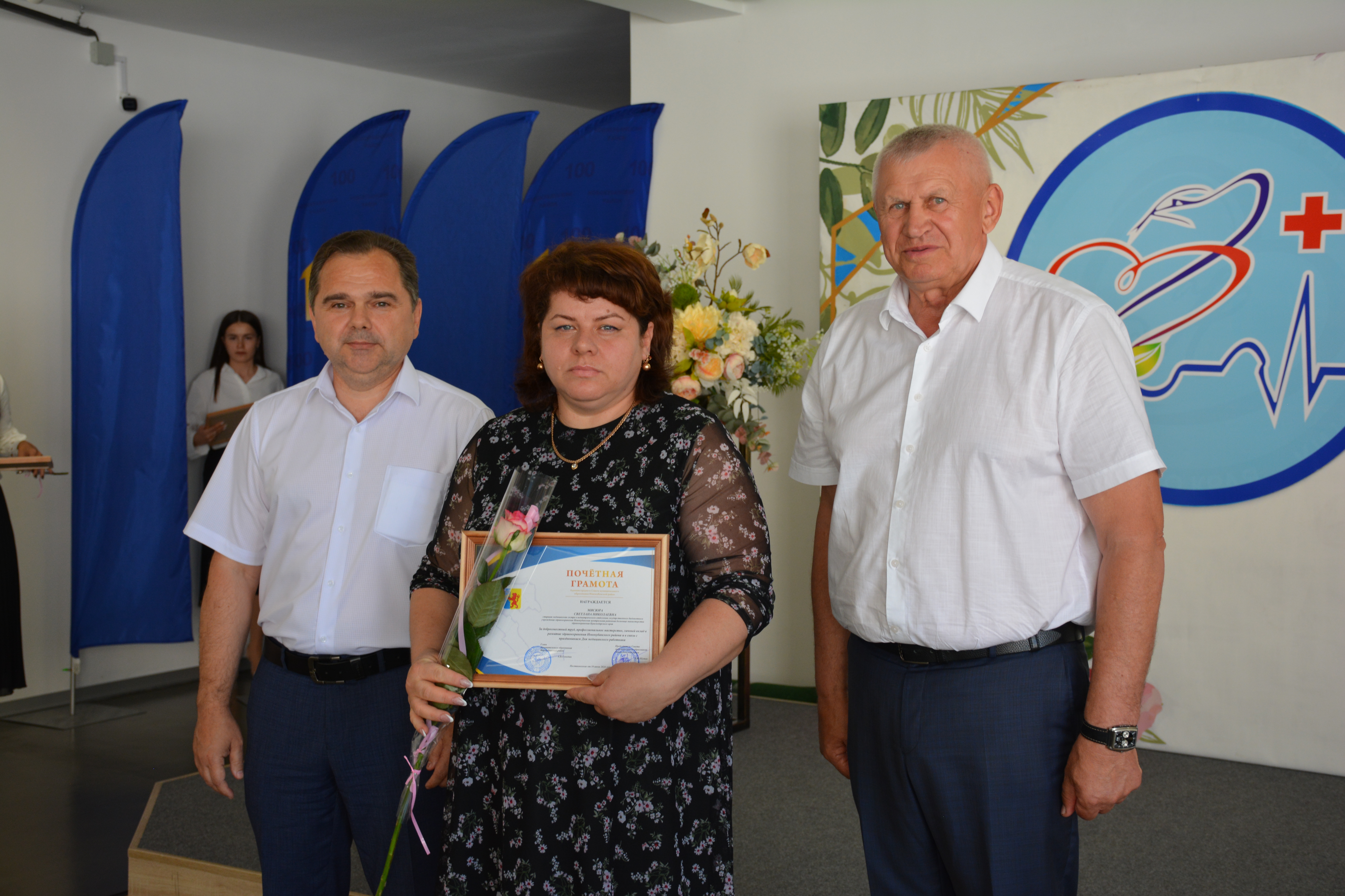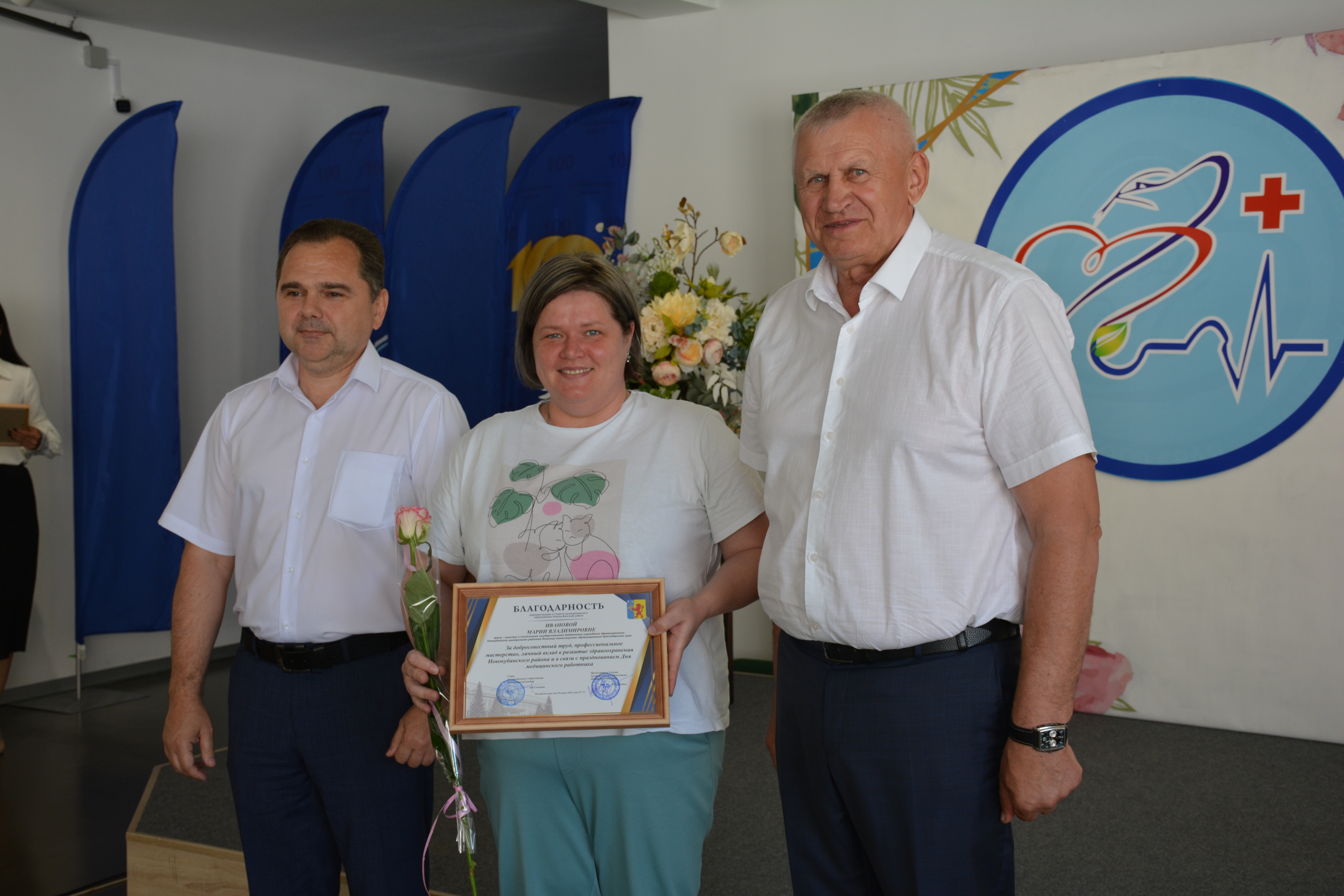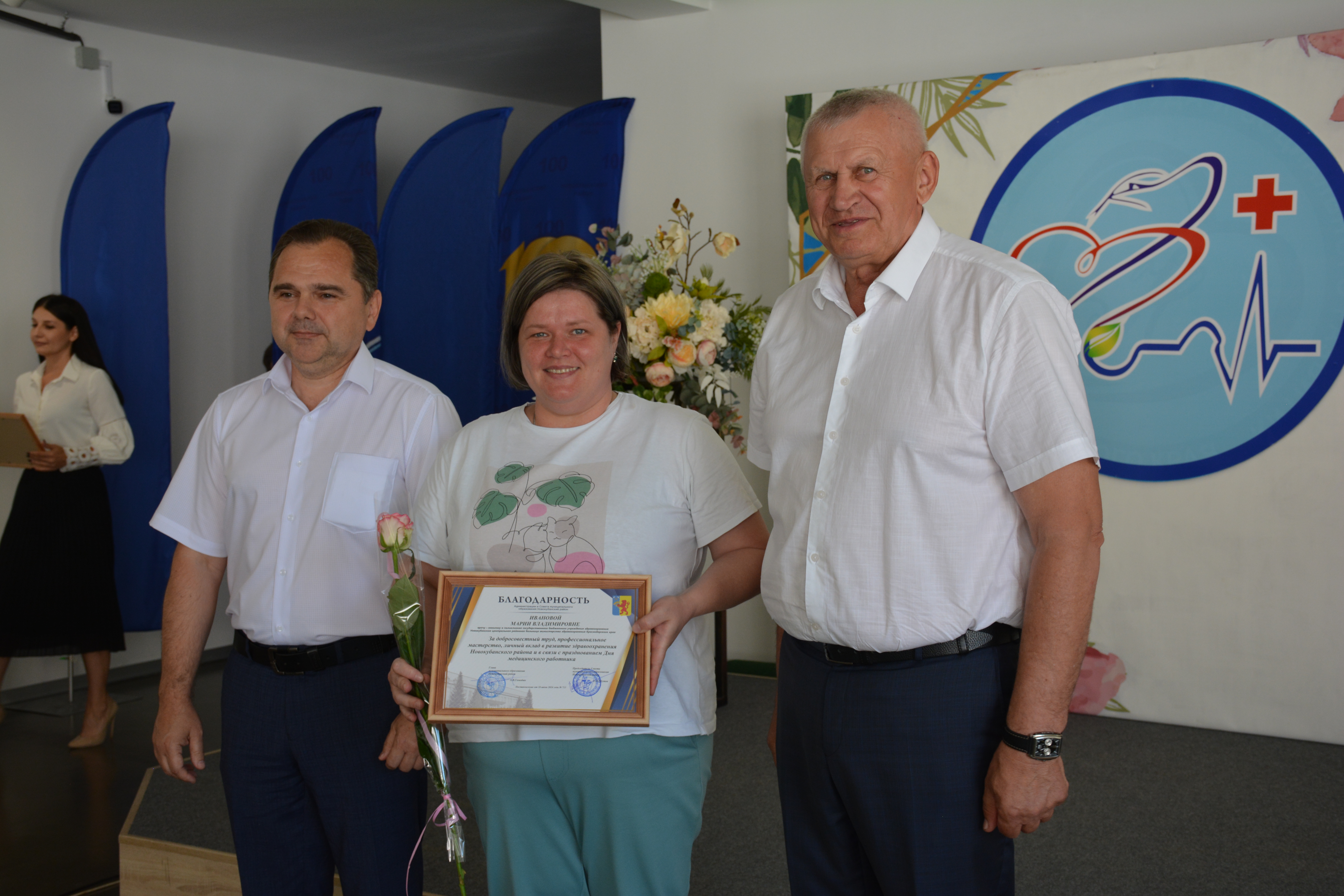 Также за достигнутые успехи в деле медицинского обслуживания населения и в честь праздника были награждены Почетными грамотами и Благодарностями сотрудники ГБУЗ «Новокубанская ЦРБ»и ГБУЗ «Новокубанская стоматологическая поликлиника».