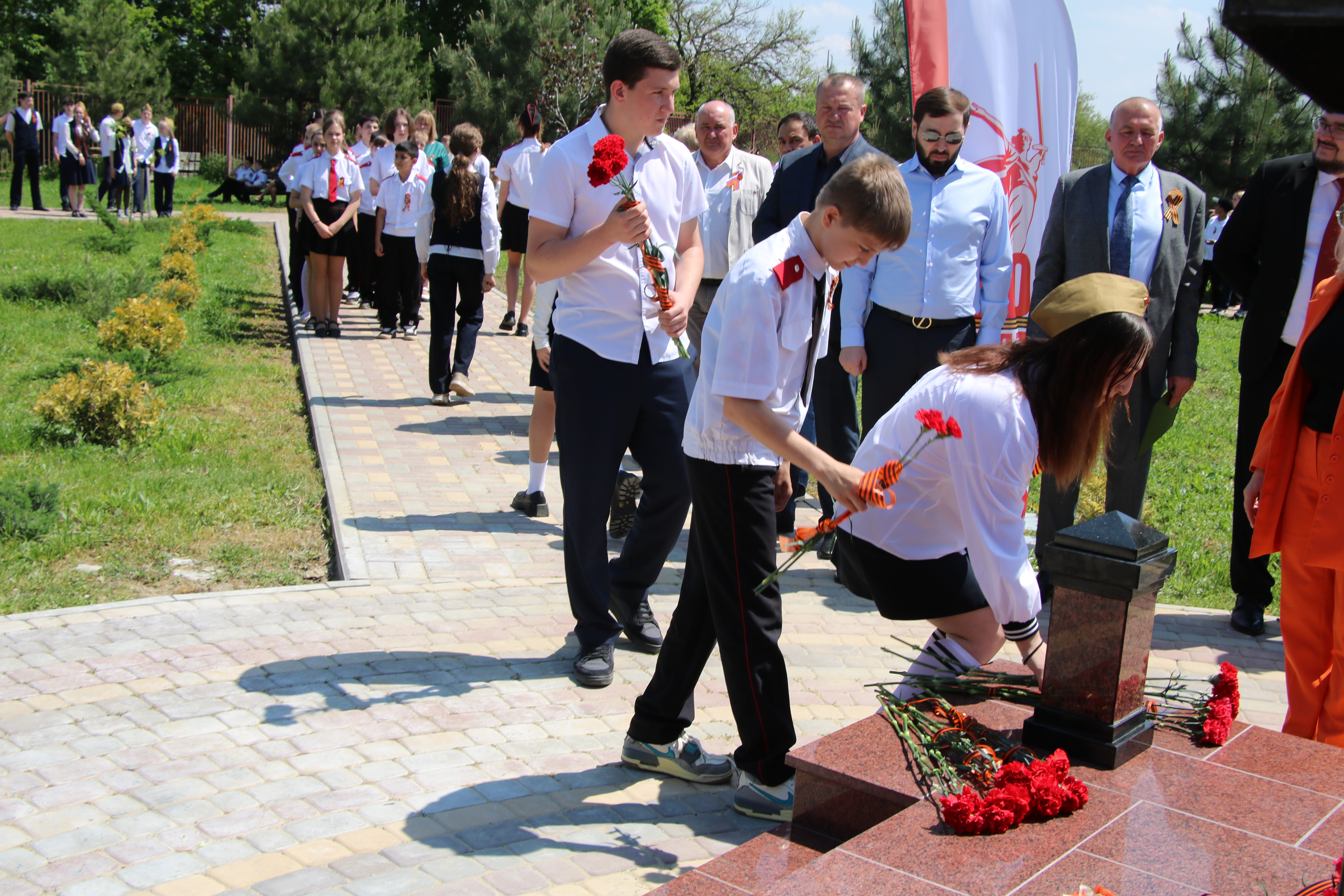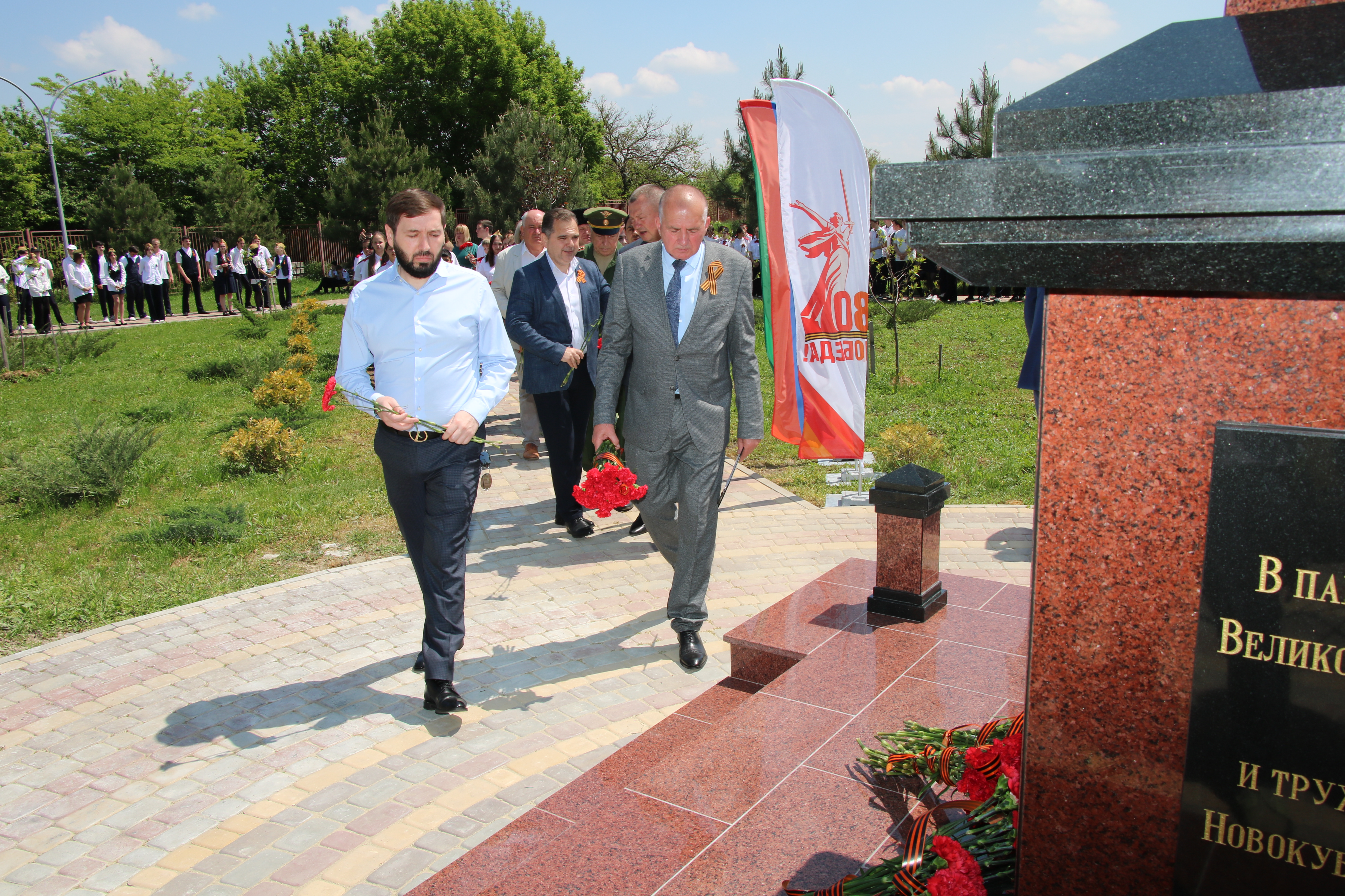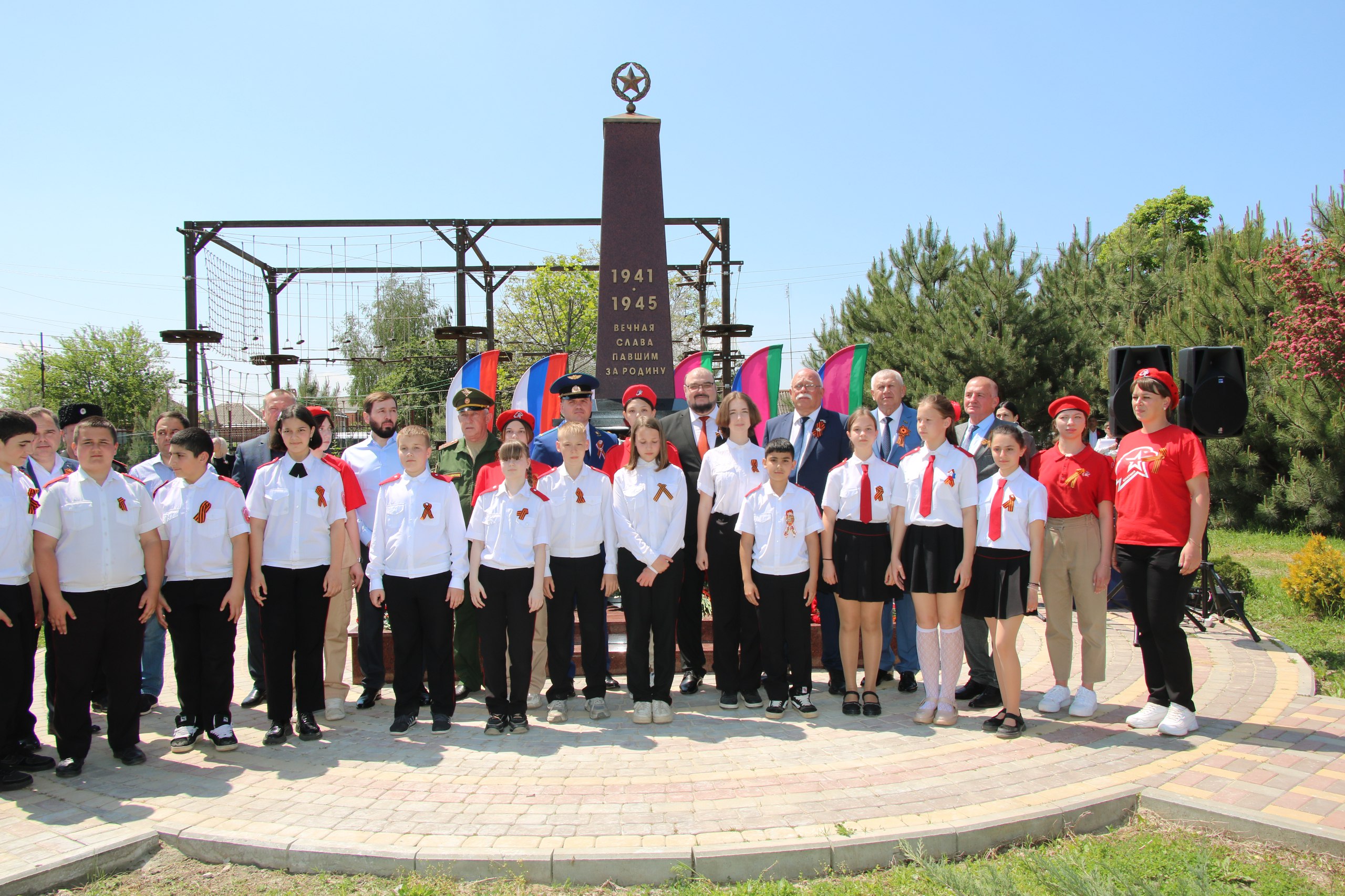 На территории МОАУООШ № 23 им. Надежды Шабатько в парке Воинской славы прошло знаменательное событие - открытие памятной стеллы в честь 80-летия Победы в Великой Отечественной войне.