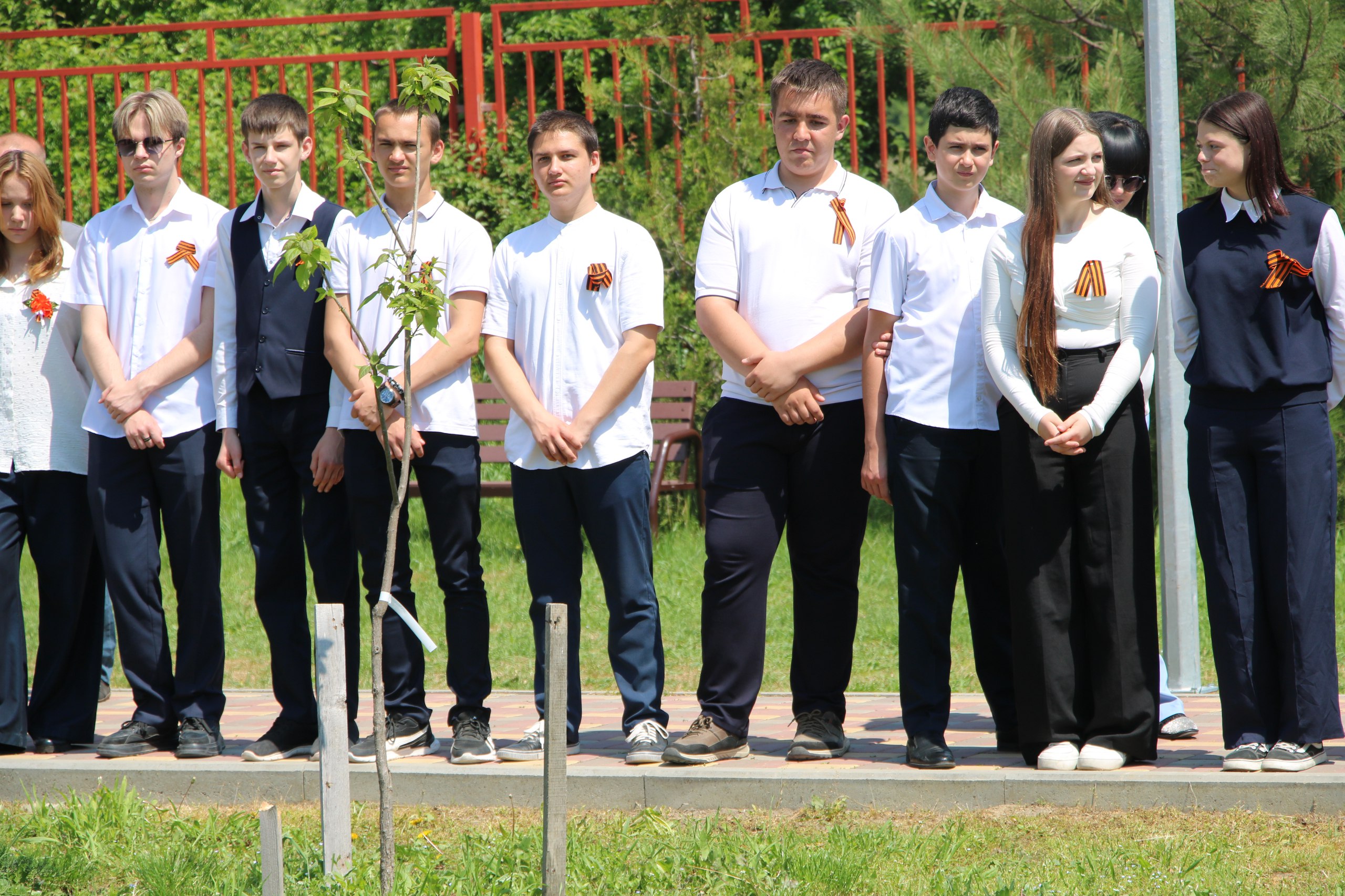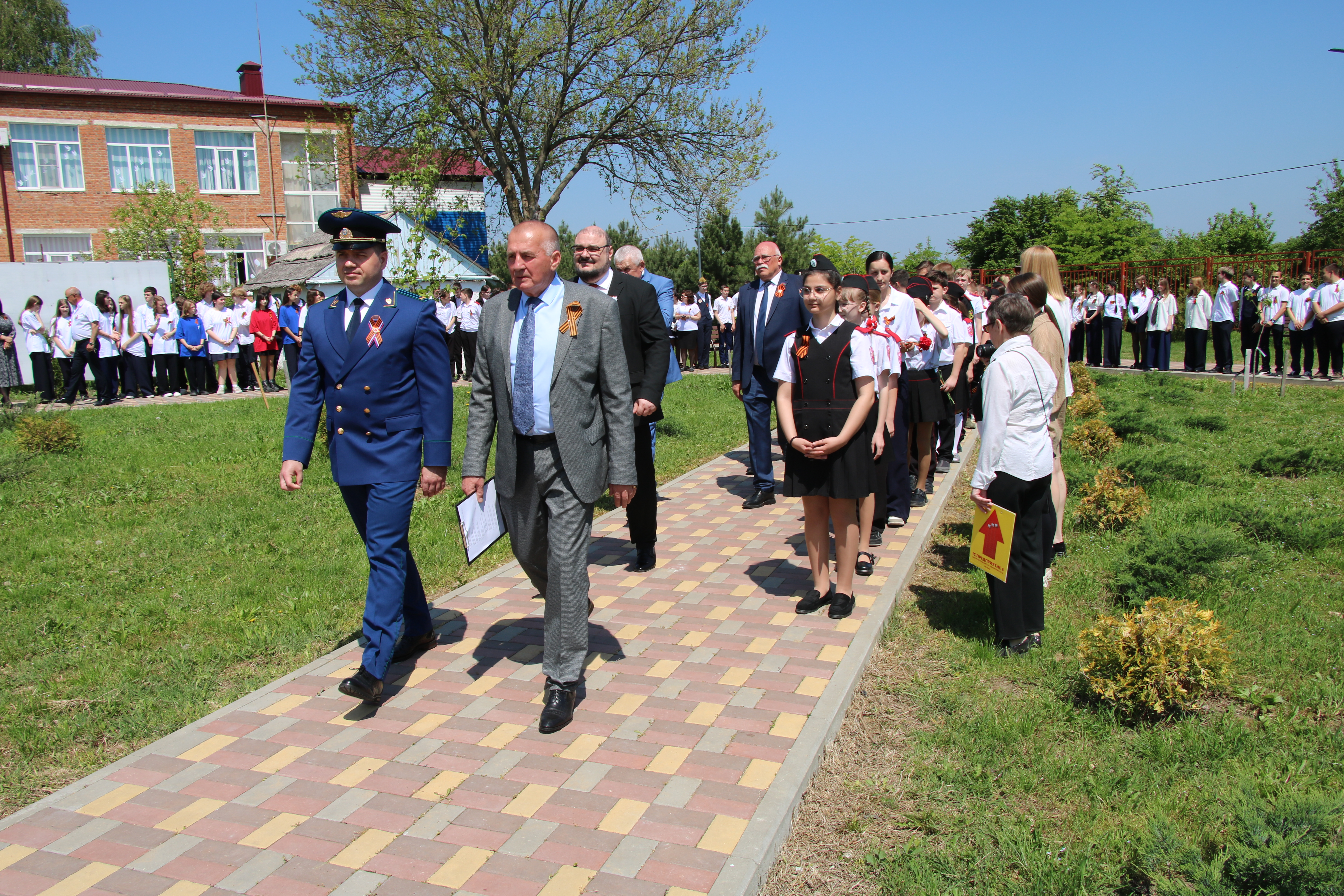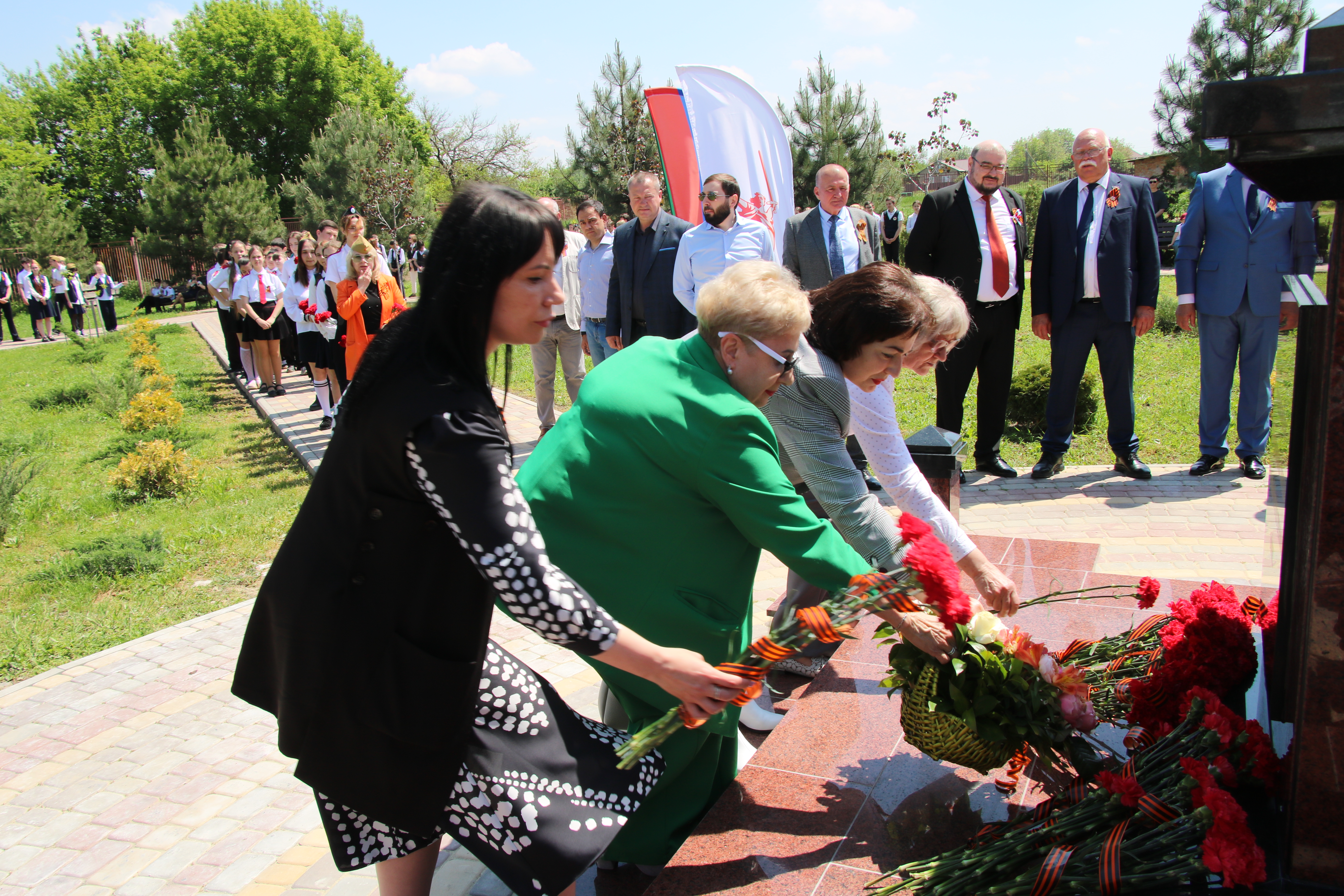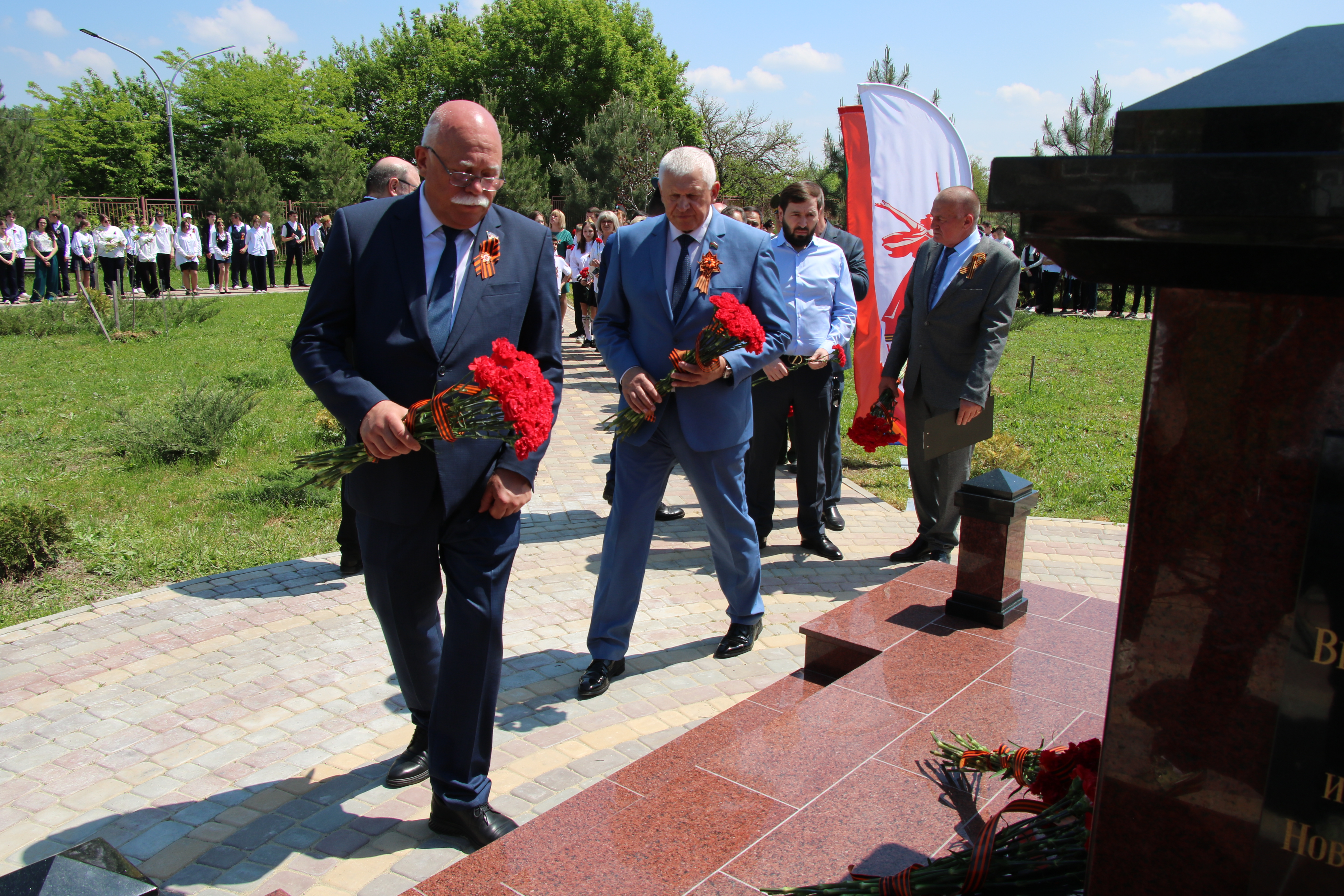 На территории МОАУООШ № 23 им. Надежды Шабатько в парке Воинской славы прошло знаменательное событие - открытие памятной стеллы в честь 80-летия Победы в Великой Отечественной войне.