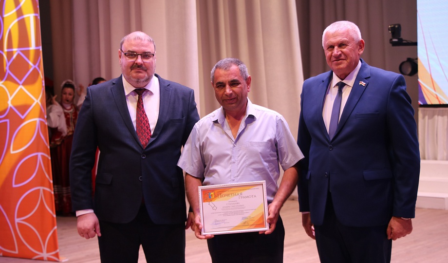 Чествование наших земляков, внесших неоценимый вклад в развитие и процветание нашего района и города началось с приветственного слова главы муниципалитета Александра Гомодина совместно с генеральным директором ЗАО КСП «Хуторок», Героем труда Кубани, Почетным гражданином Новокубанского района Федором Ивановичем Булдыжовым, депутатами Государственной Думы Андреем Дорошенко и Натальей Костенко, а также председателем Совета Евгением Шутовым. Они поздравили и сердечно поблагодарили всех присутствующих за вклад в развитие Новокубанского района. Затем мероприятие продолжилось вручением удостоверений  «Почетный гражданин Новокубанского района» и присвоения звания «Почетный гражданин Новокубанского района» Анатолию Малых, руководителю ООО «Комета», Виктору Хрестину, директору ФГБУ туберкулезного санатория «Голубая бухта» министерства здравоохранения РФ  и Валентину Шолохову, председателю территориальной избирательной комиссии Новокубанская с 2002 года по 2020 год. Сегодня также слова благодарности и уважения звучали в честь людей, которые своим трудом прославили наш район и чьи имена занесены на «Аллею Славы» Новокубанского района.