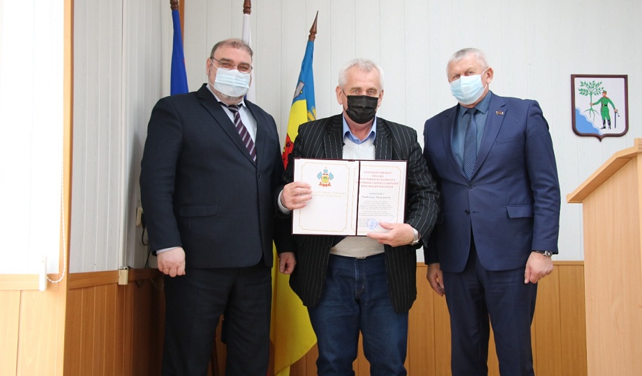 В завершение мероприятия были вручены благодарственные письма Законодательного Собрания Краснодарского края удостоившимся жителям района.