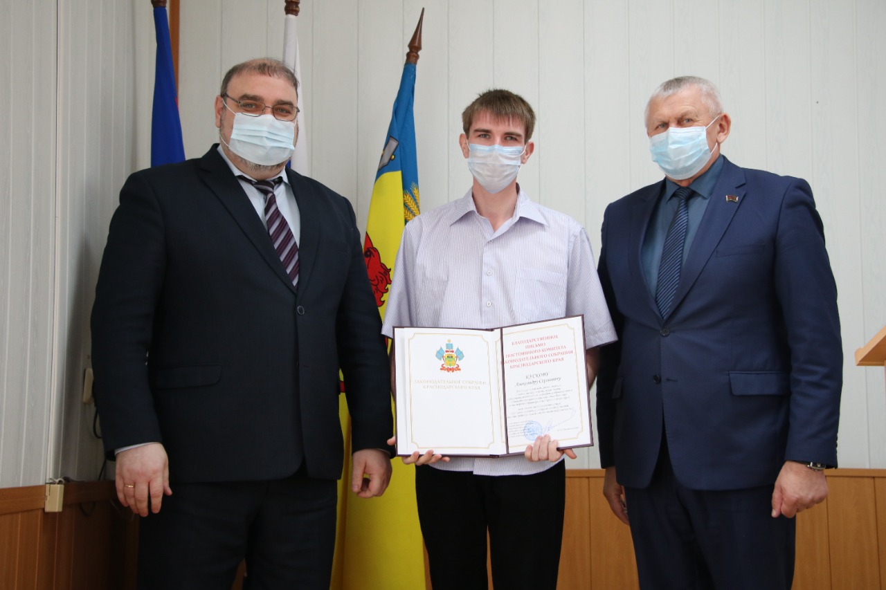 В завершение мероприятия были вручены благодарственные письма Законодательного Собрания Краснодарского края удостоившимся жителям района.