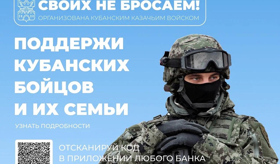 – Единого счета в нашем крае для помощи военнослужащим до сих пор не было. На уровне края было принято решение запустить акцию по сбору средств «Своих не бросаем» и создать специальный счет на базе Кубанского казачьего войска, которое сейчас принимает самое активное участие в СВО. Счет позволит аккумулировать все средства. Помощь смогут оказывать не только предприятия, как это сейчас происходит, но и простые жители. Но самое главное - на средства, собранные на специальном счете, мы сможем оказать необходимую помощь мобилизованным и добровольцам, их семьям, а также раненым и родственникам погибших, – сообщил вице-губернатор края, атаман Александр Власов.
