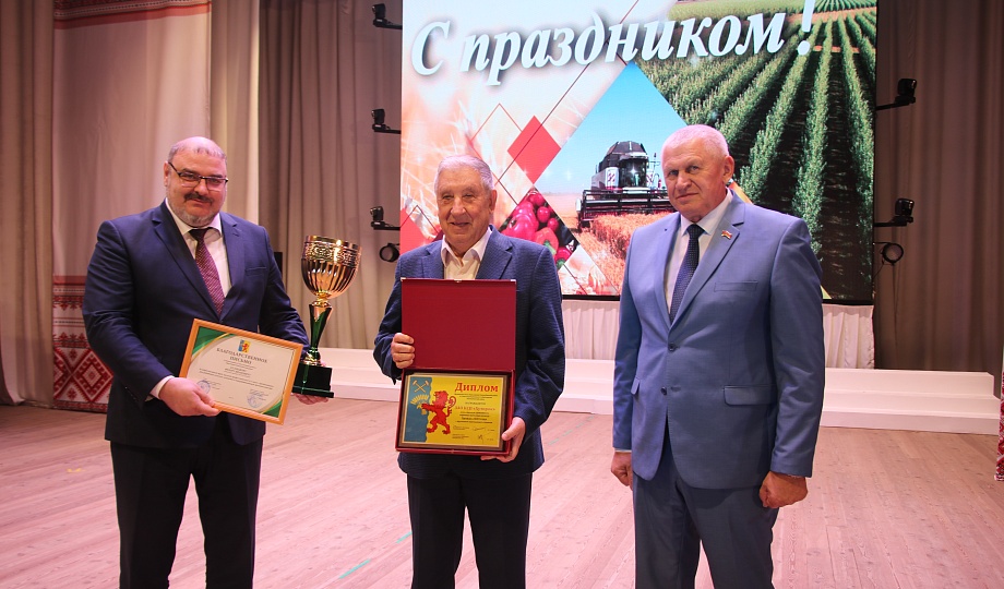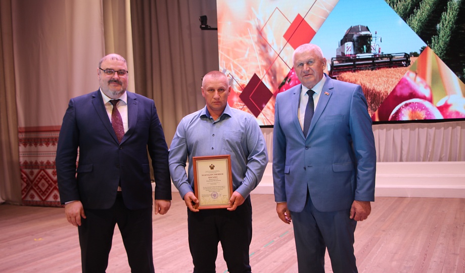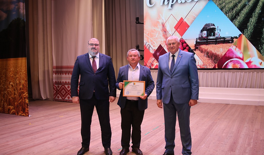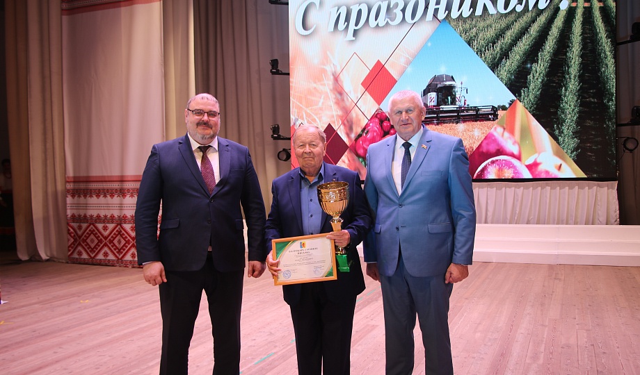 Чествование наших земляков, внесших неоценимый вклад в развитие сельского хозяйства началось с приветственного слова главы района Александра Гомодина и председателя Совета Евгения Шутова.