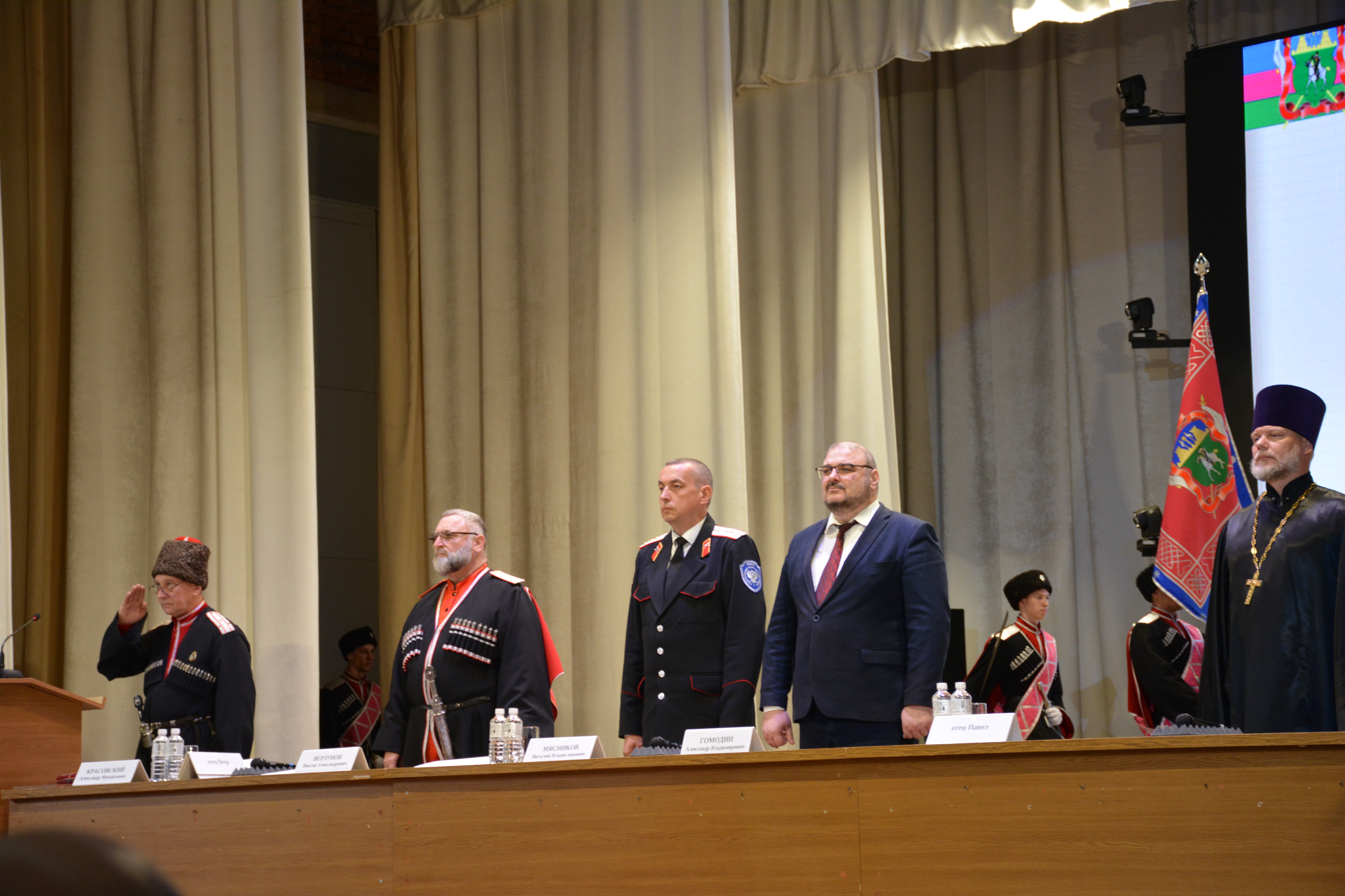 По традиции мероприятие началось с молитвы, выноса знамени и исполнения гимнов. Минутой молчания казаки почтили память бойцов, погибших в зоне СВО, и представителей казачества, внесших неоценимый вклад в возрождение и развитие казачьих обществ.