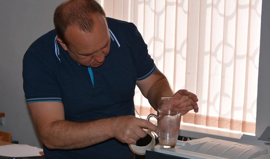 Встреча началась со знакомства с работой эксперта криминалистической группы капитана полиции Ивана Жарикова. Чемодан криминалиста вызвал большой интерес у ребят, они с огромным удовольствием разглядывали множество кисточек, специальных порошков необходимых для сбора улик на месте происшествий. Ребята попробовали снять свои же отпечатки пальцев с кружки.