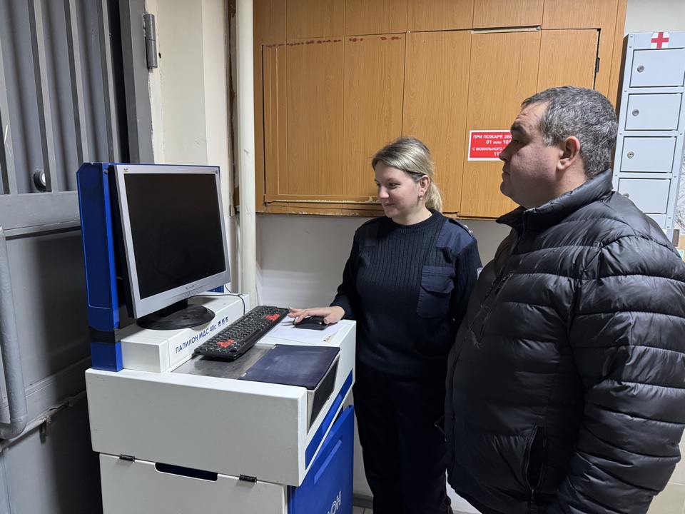 Общественник проверил на соответствие установленным требованиям помещения для задержанных за административные правонарушения, а также исправность камер видеонаблюдения и техническую оснащенность дежурной части.