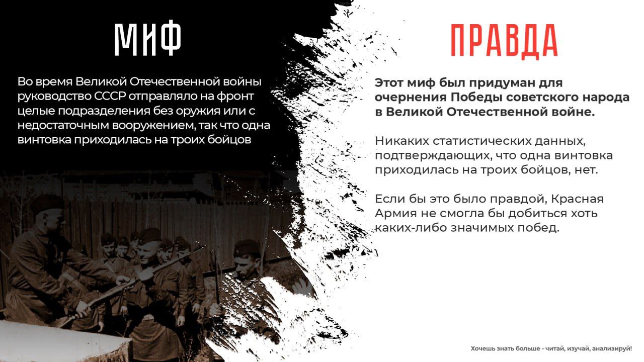 В ходе проведения акции, представляем Вашему вниманию графические материалы, разоблачающие основные заблуждения о Великой Отечественной войне.