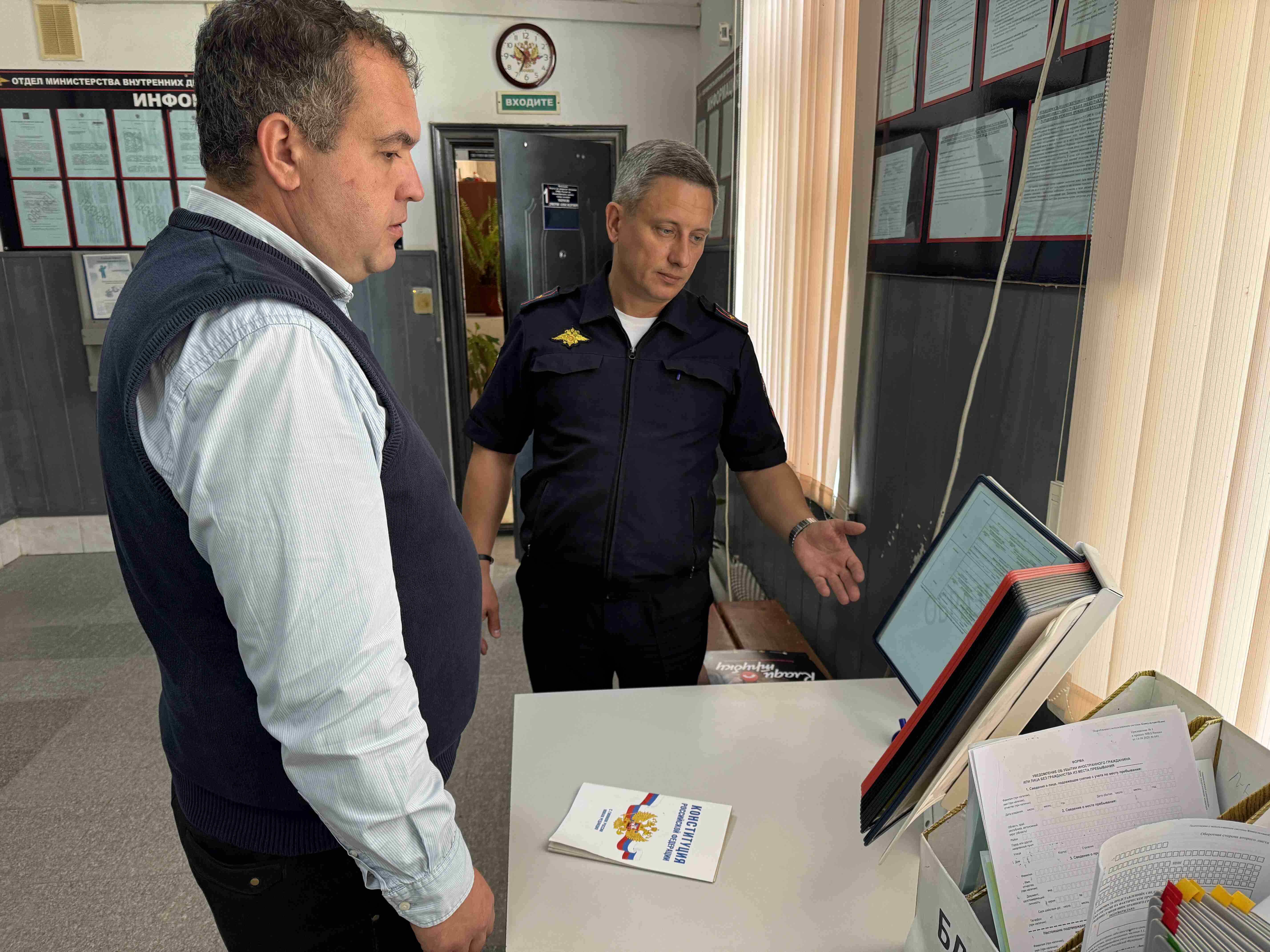 В рамках акции «Гражданский мониторинг» член Общественного совета при ОМВД России по Новокубанскому району Дмитрий Остренко посетил отдел по вопросам миграции