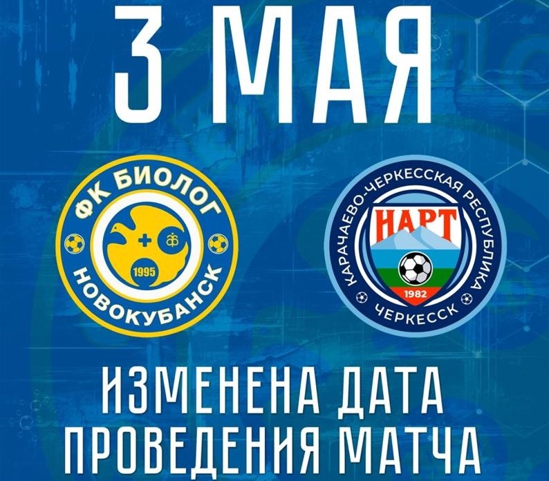 ВНИМАНИЕ! ИЗМЕНЕНА ДАТА ПРОВЕДЕНИЯ МАТЧА!Матч 7 тура "LEON - Второй лиги Б" между командами "Биолог-Новокубанск" - "Нарт" (Черкесск) перенесен с 4 мая на 3 мая (пятница) 2024 года.