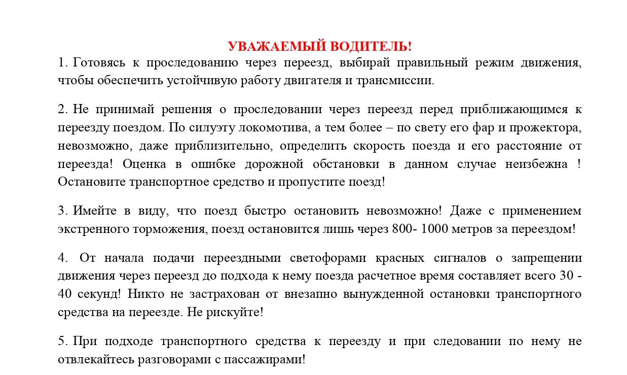 29.10.2020 Филиал ОАО "РЖД" Северо-кавказская железная дорога Северо-кавказская центральная дирекция инфраструктуры Армавирская дистанция пути обращается к водителям автотранспортных средств:
