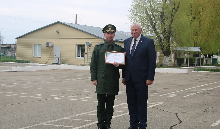 Сегодня в День космонавтики председатель Совета муниципального образования Новокубанский район Евгений Шутов поздравил личный состав государственного учреждения министерства обороны Российской Федерации «Войсковая часть 20608» и вручил благодарственные письма администрации и Совета муниципального образования Новокубанский район  за добросовестное выполнение служебных обязанностей, примерную воинскую и трудовую дисциплину.