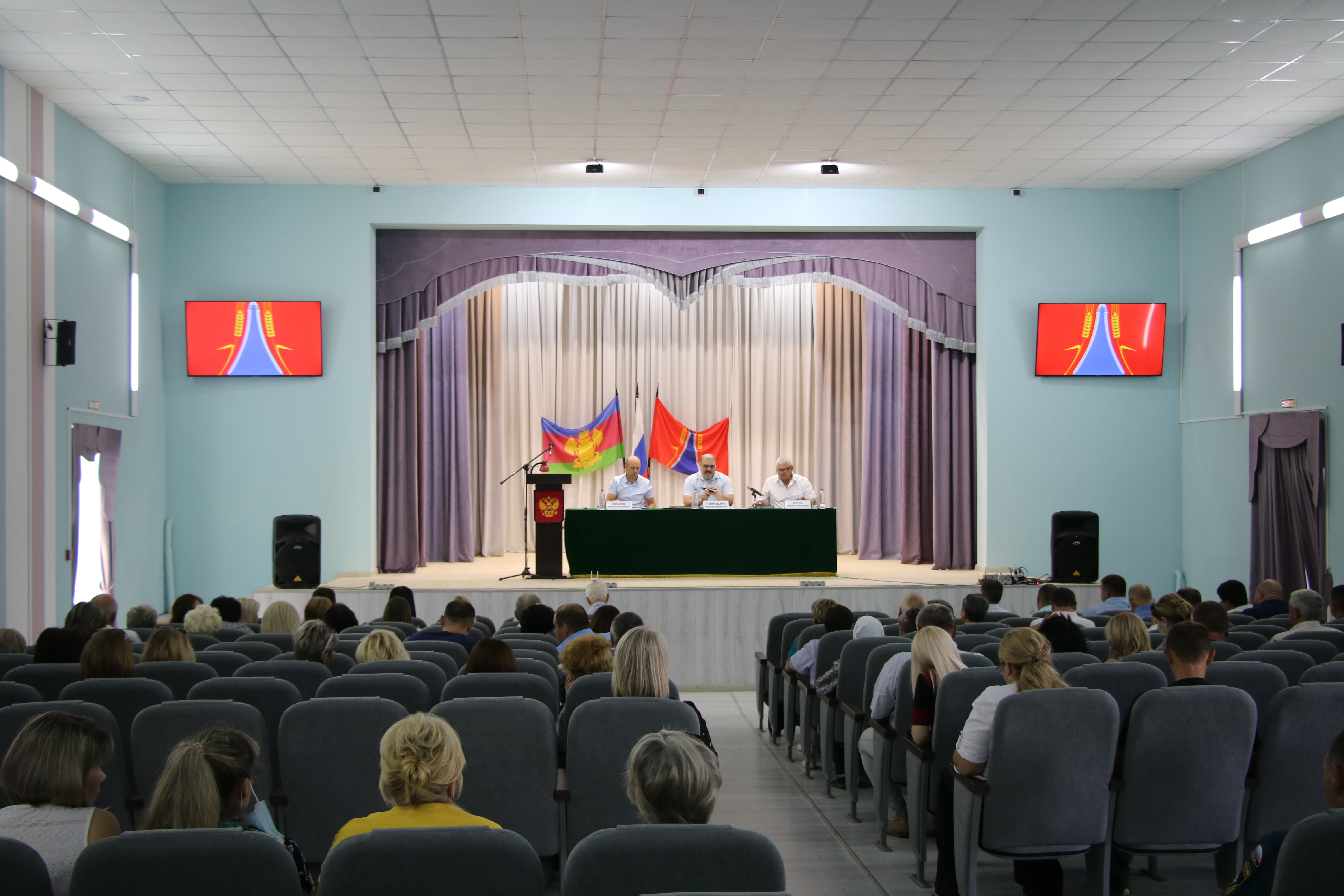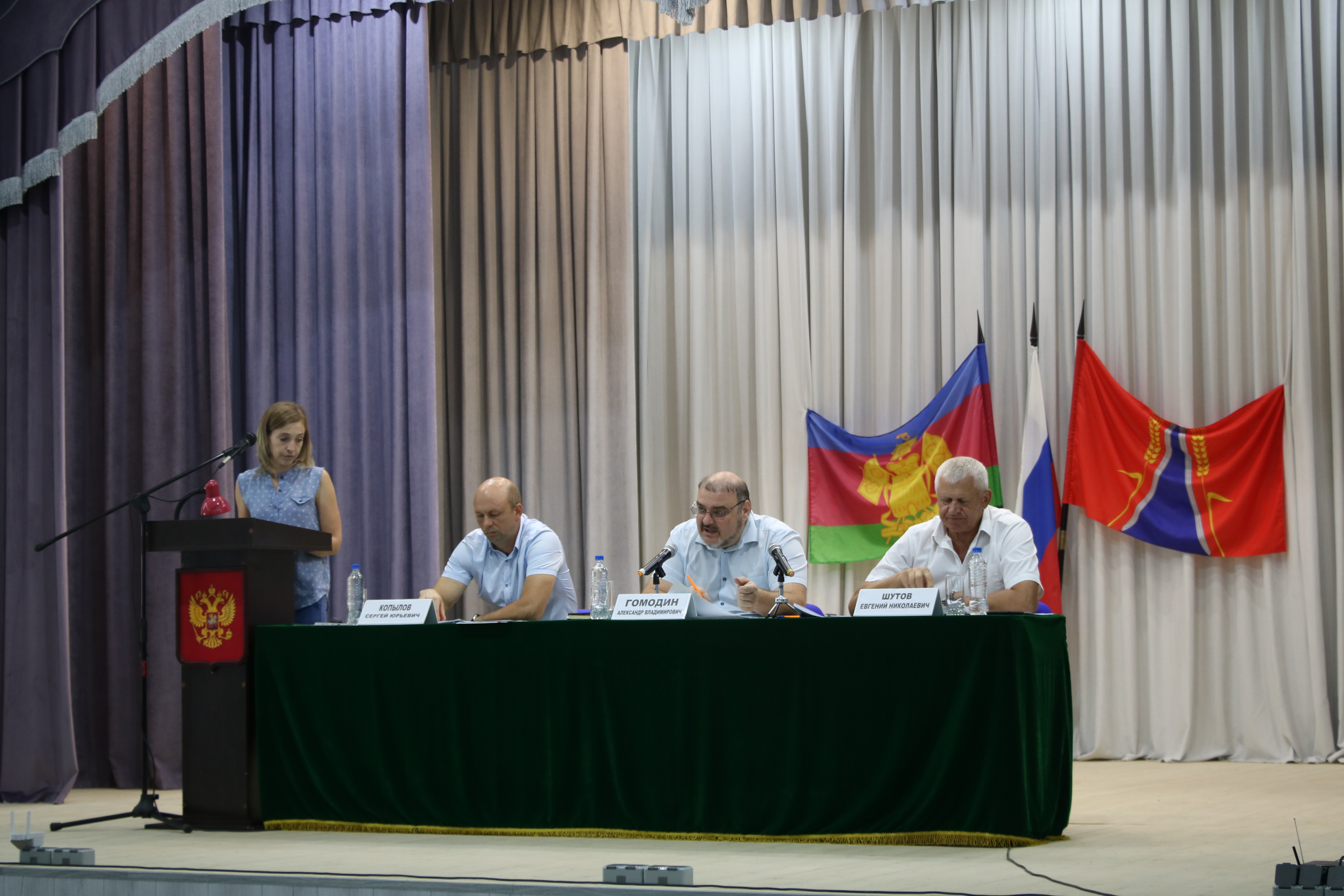 В праздничный День флага России выездное планерное совещание состоялось в МКУК «Советский КДЦ» ст. Советская. В президиуме заседали глава Новокубанского района Александр Гомодин, председатель Совета депутатов Евгений Шутов и глава Советского сельского поселения Сергей Копылов.