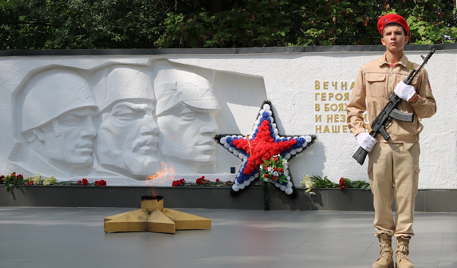 В ходе торжественного мероприятия собравшиеся почтили минутой молчания всех, героически защищавших свою Родину в годы Великой Отечественной войны. В завершение торжественного мероприятия участники возложили цветы к мемориалу «Вечный огнь».
